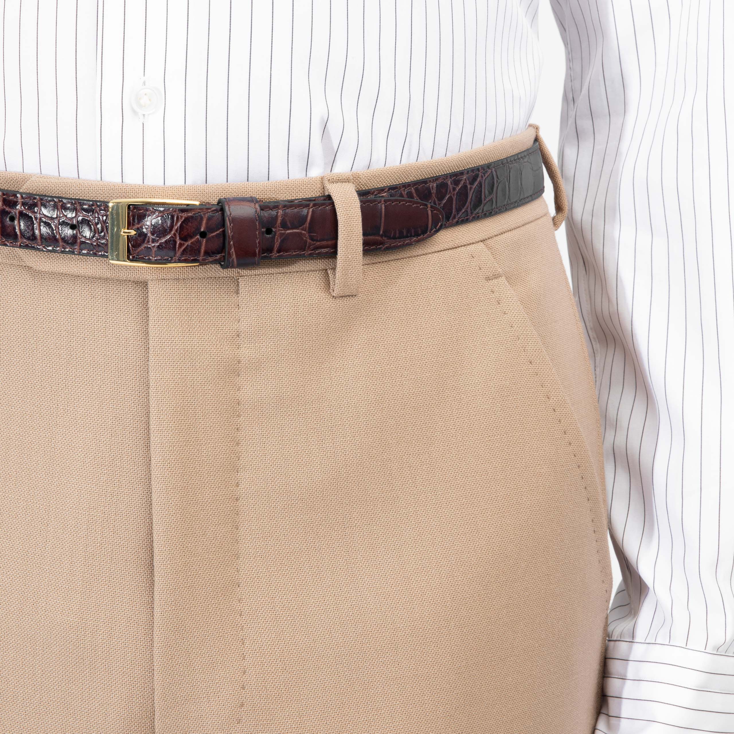 ceinture fine en cuir de veau italien embossé façon crocodile