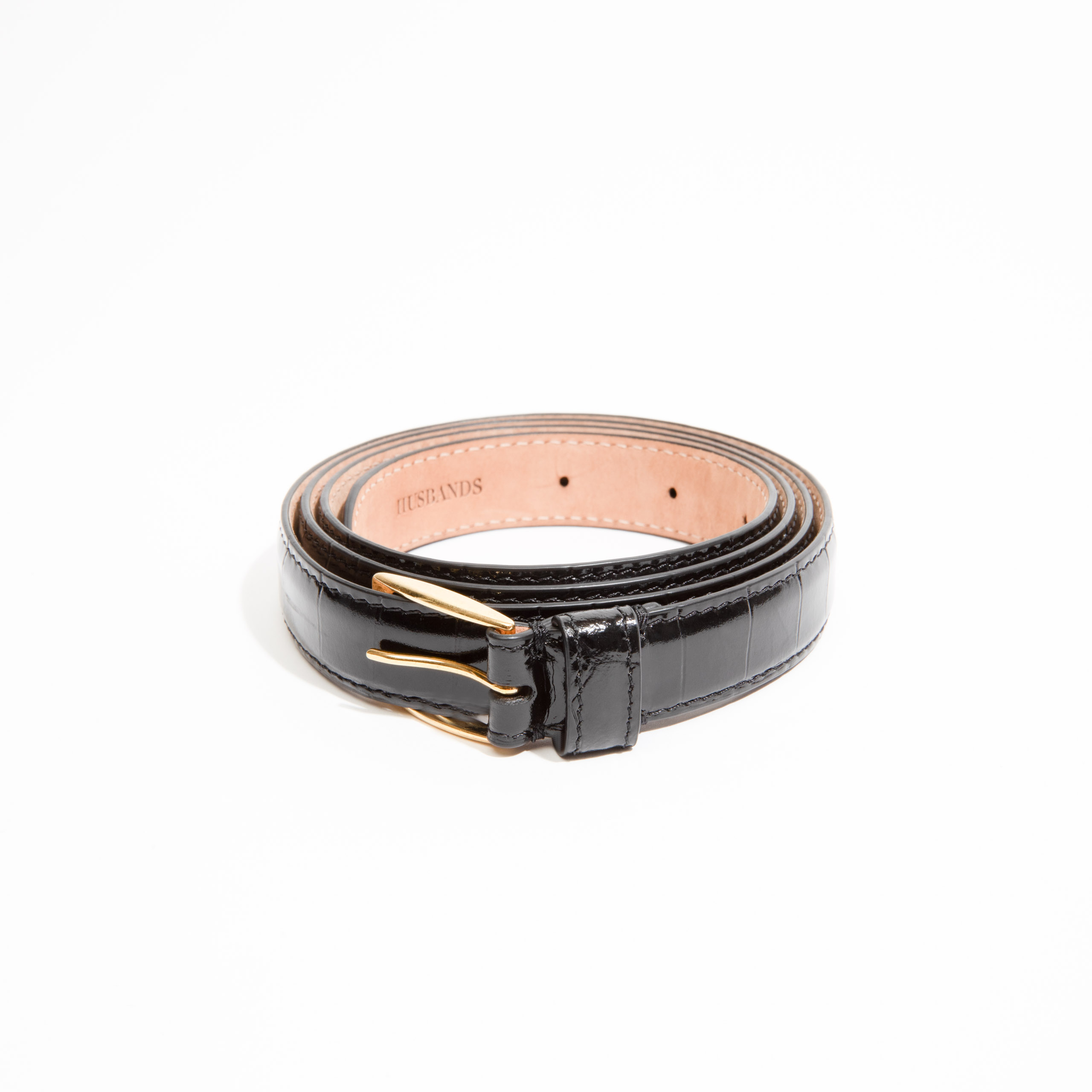 ceinture fine en cuir de veau italien embossé façon crocodile