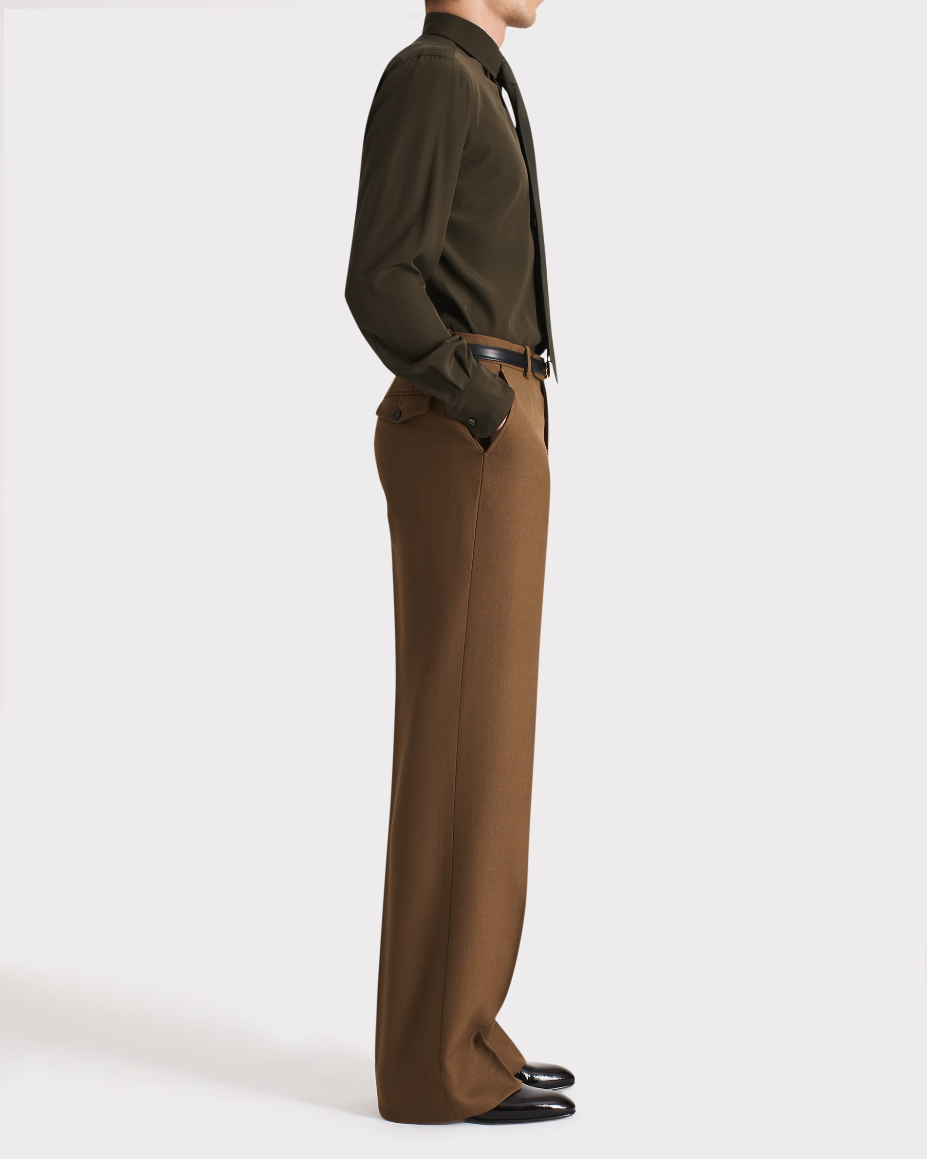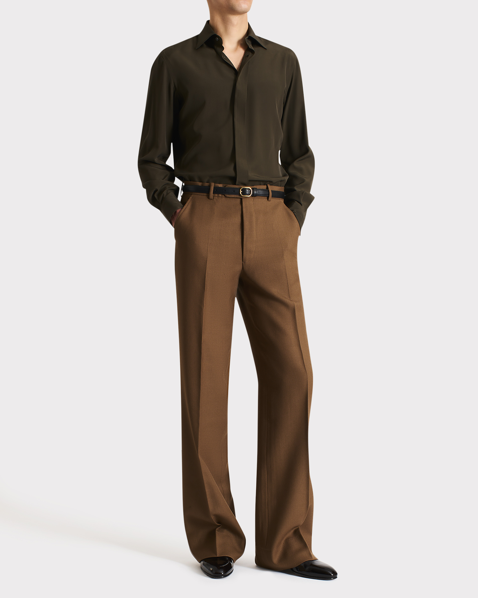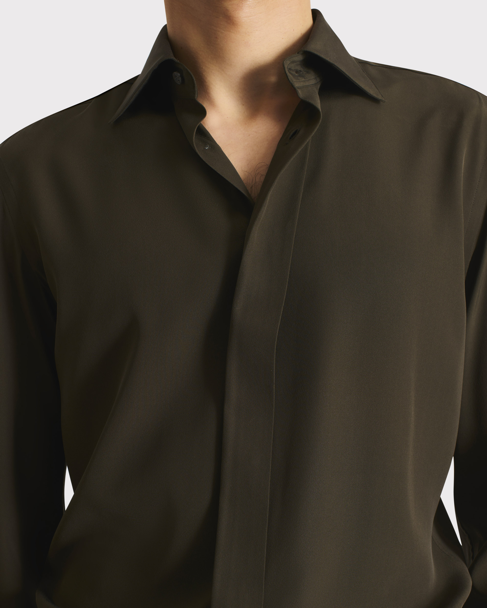 CHEMISE COL CLASSIQUE EN CRÊPE DE SOIE – OLIVE