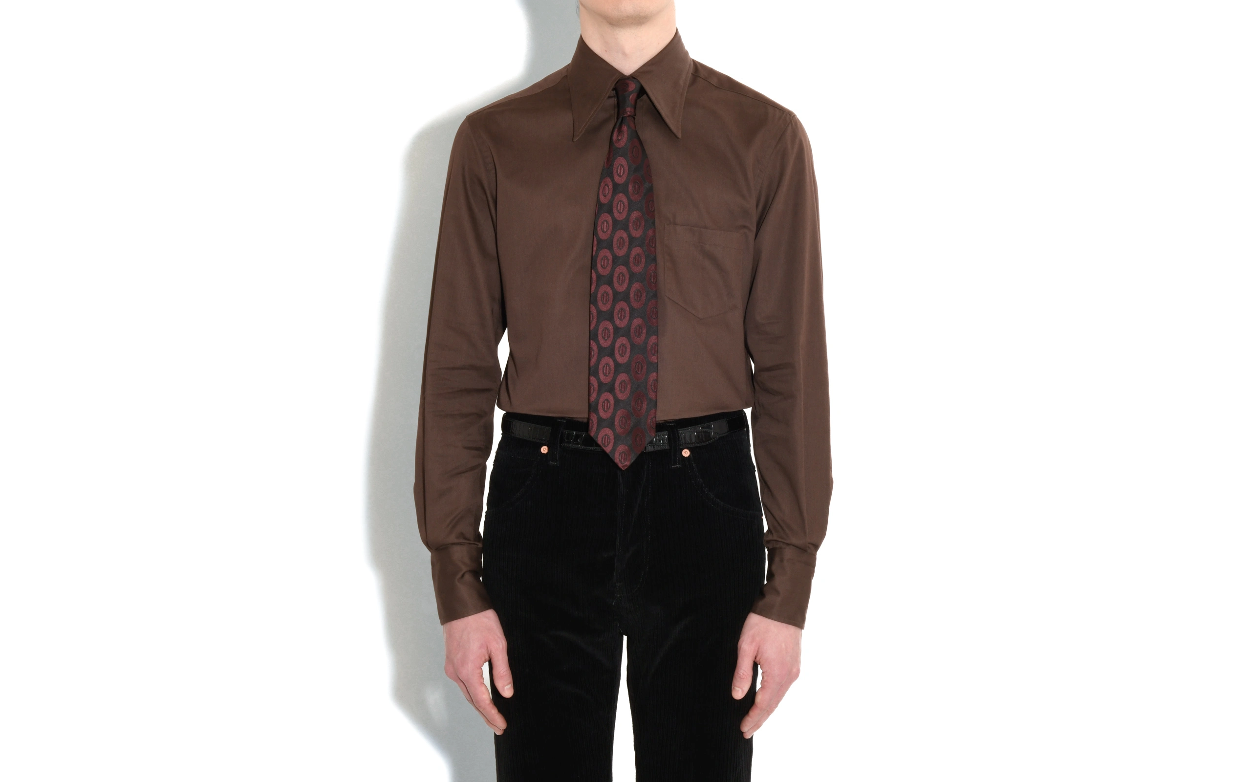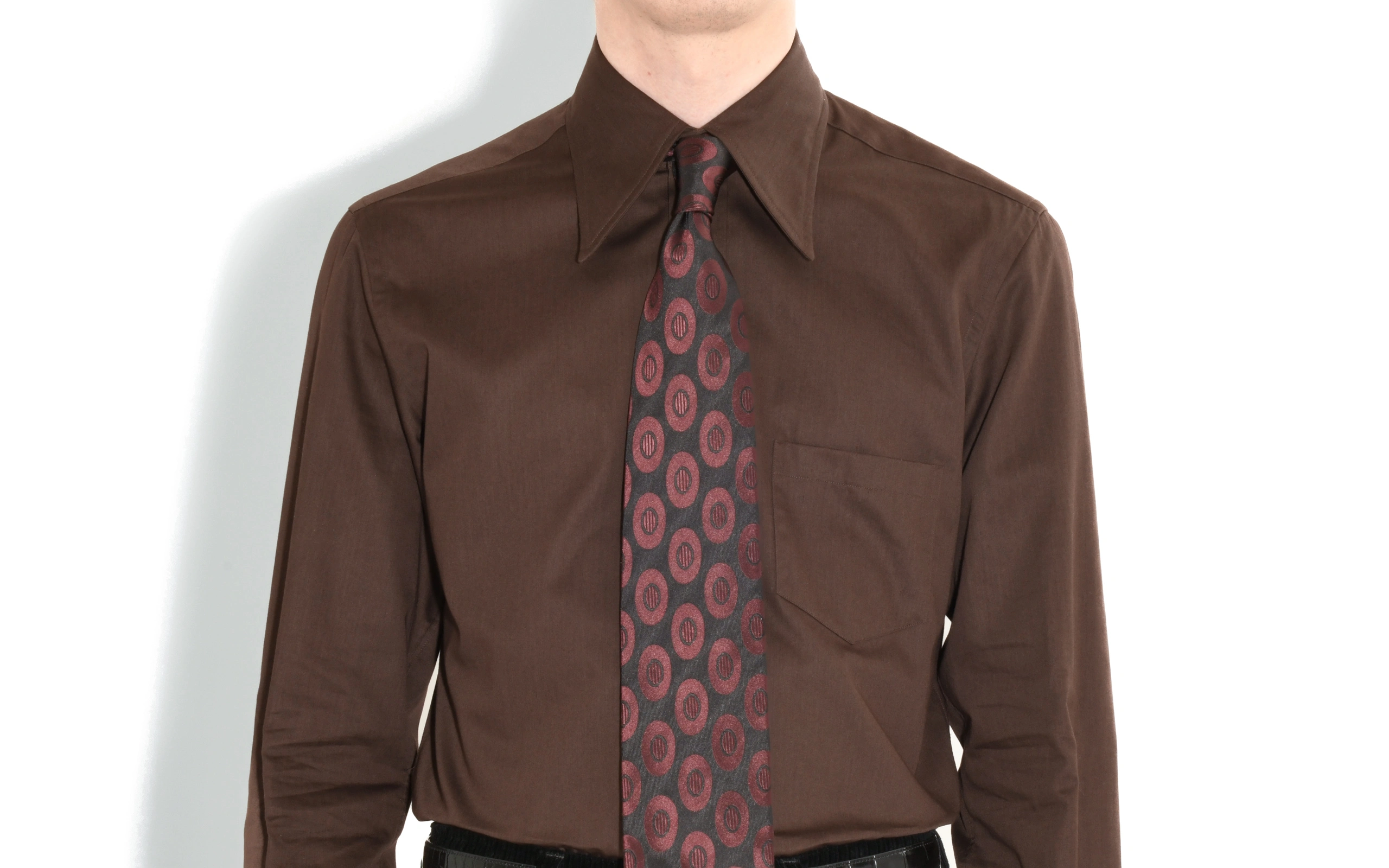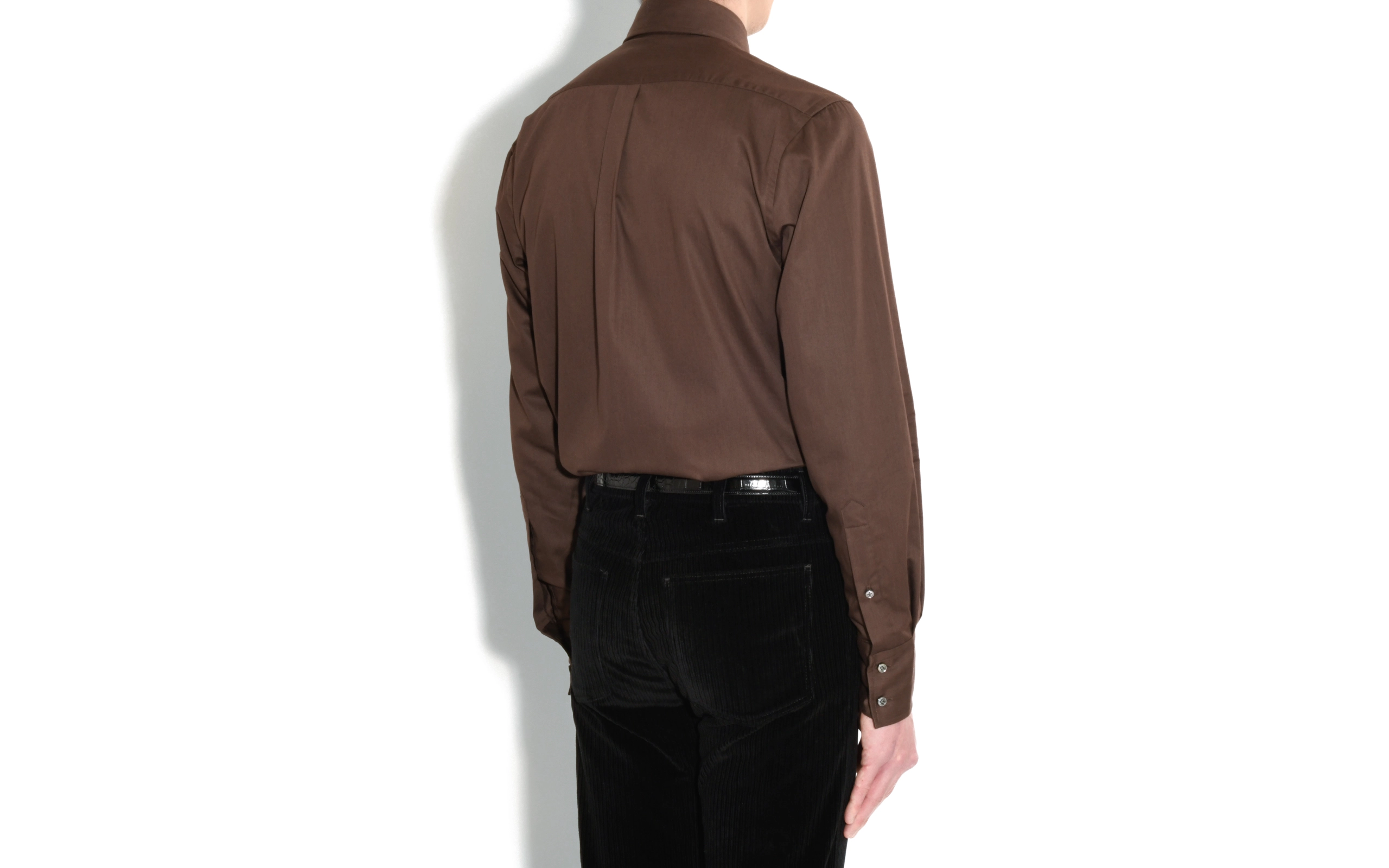 CHEMISE COL LARGE EN SATIN DE COTON – CHOCOLAT