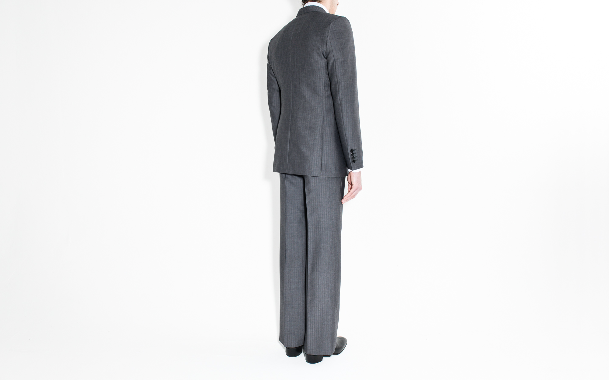COSTUME CROISÉ EN LAINE ET MOHAIR – GRIS ACIER
