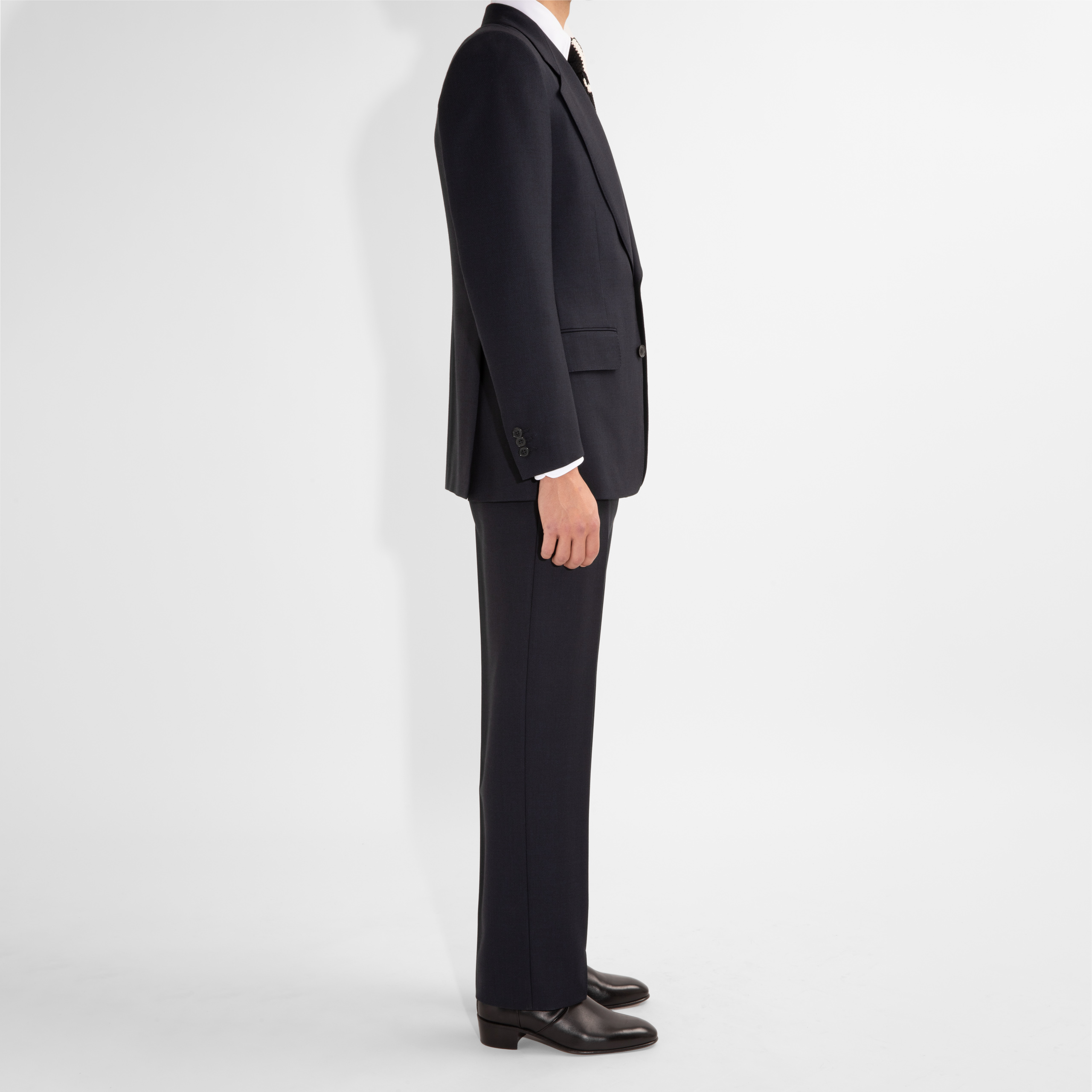 costume droit deux boutons, coupe classique, caviar de laine anglaise