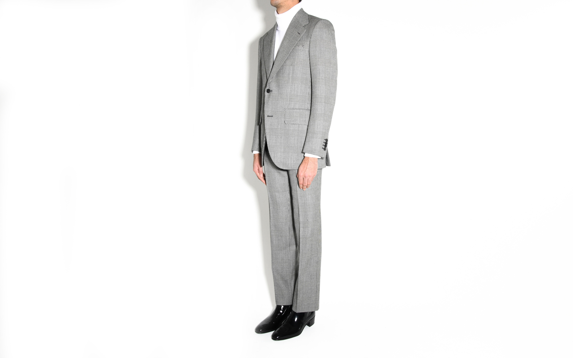 COSTUME DROIT EN SERGÉ – PRINCE DE GALLES NOIR ET BLANC