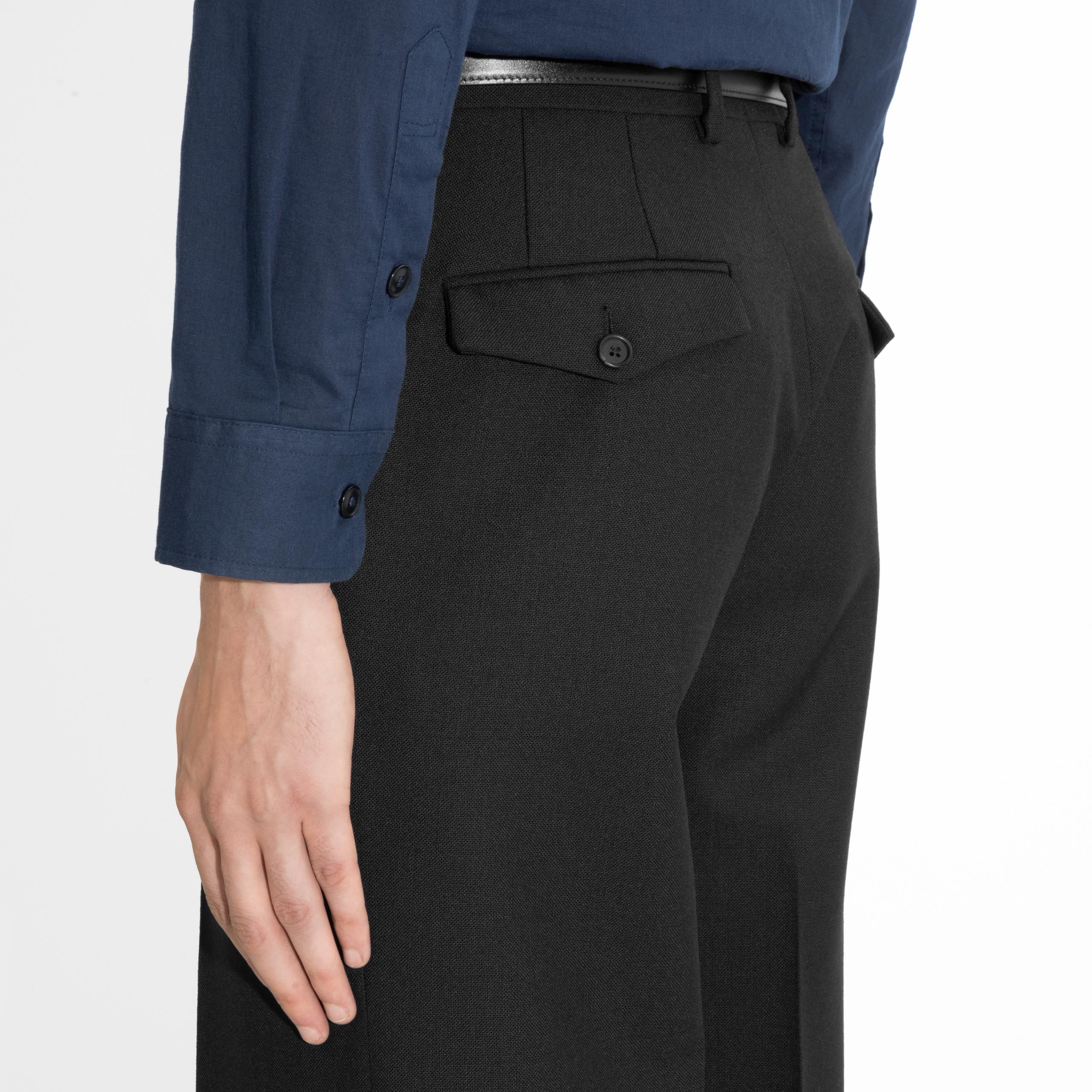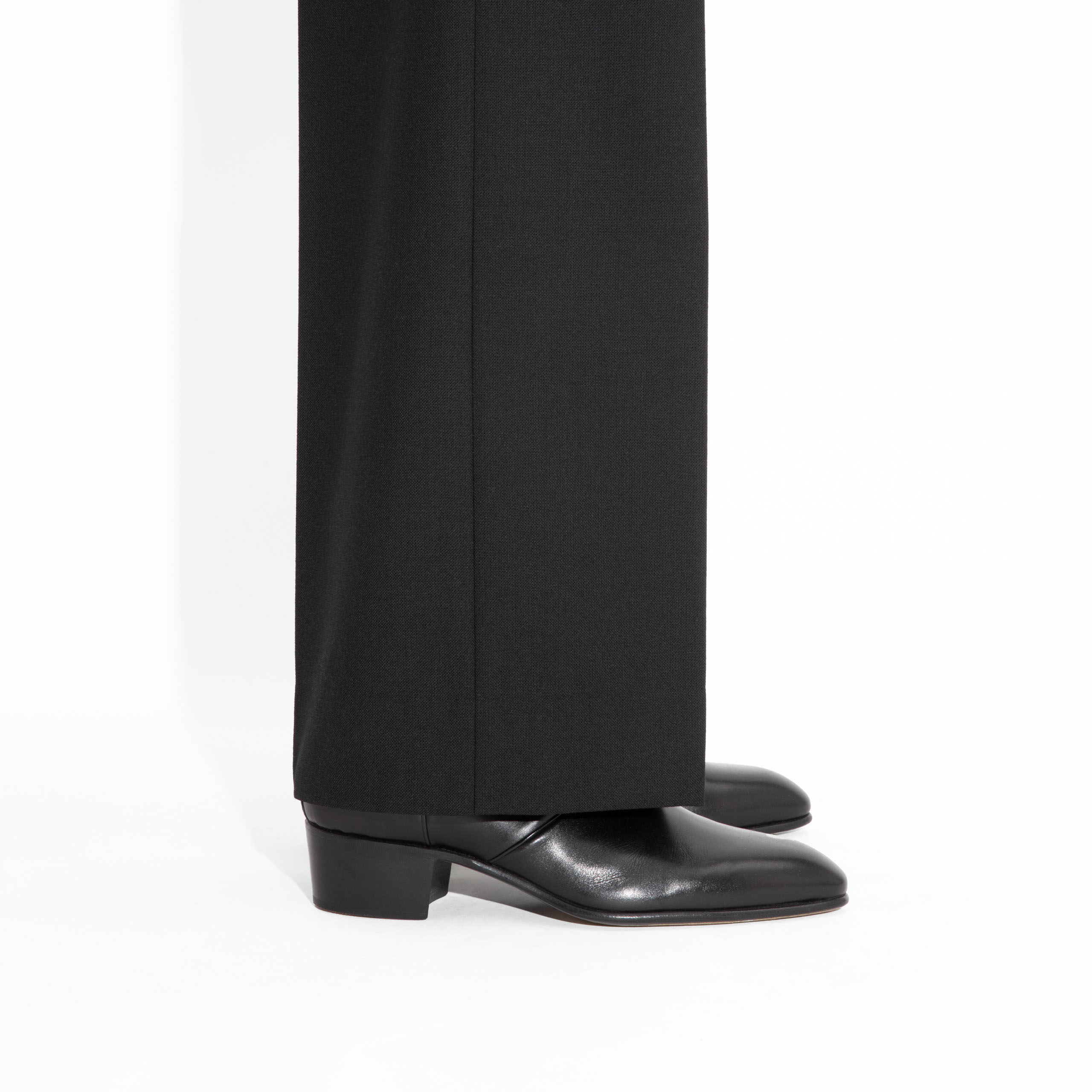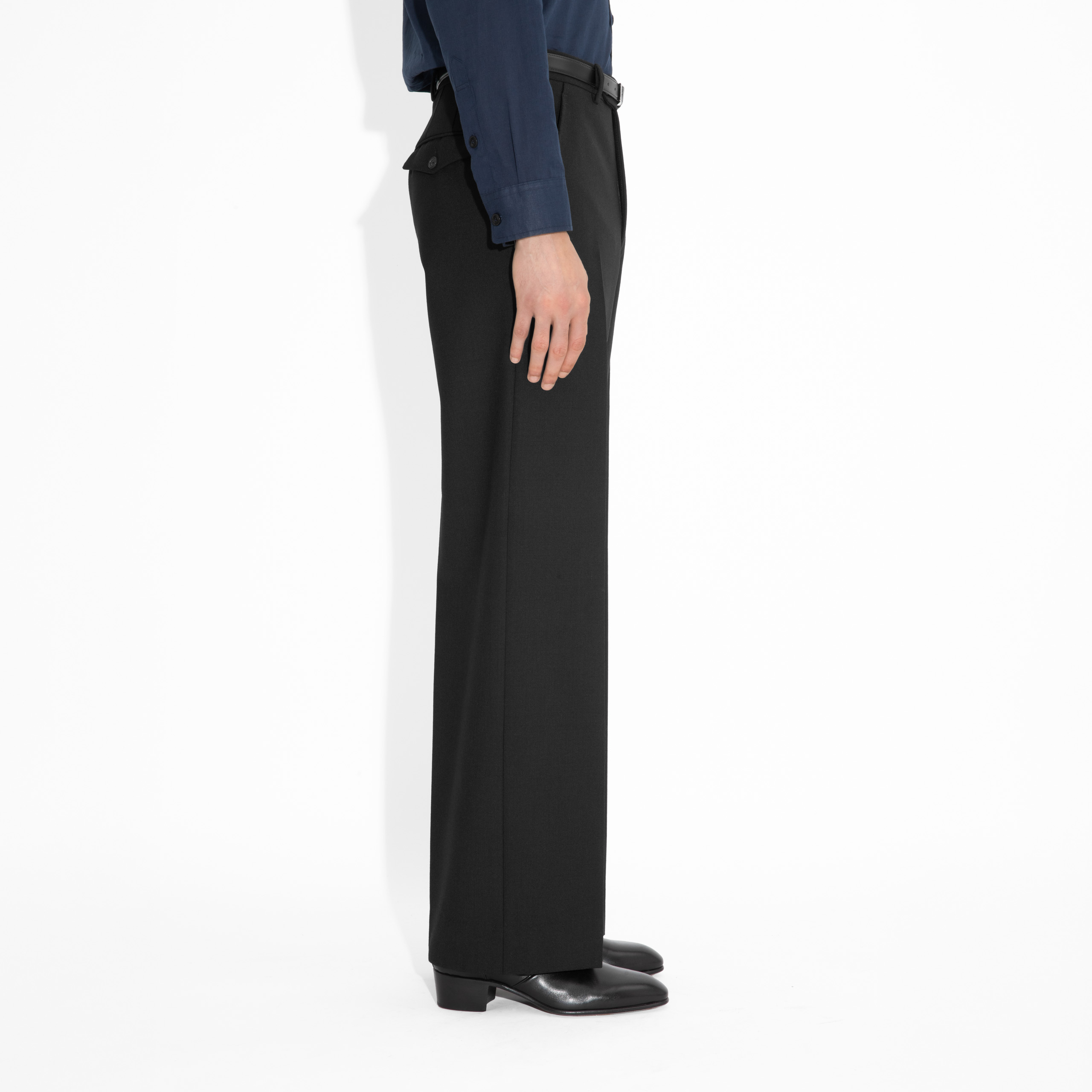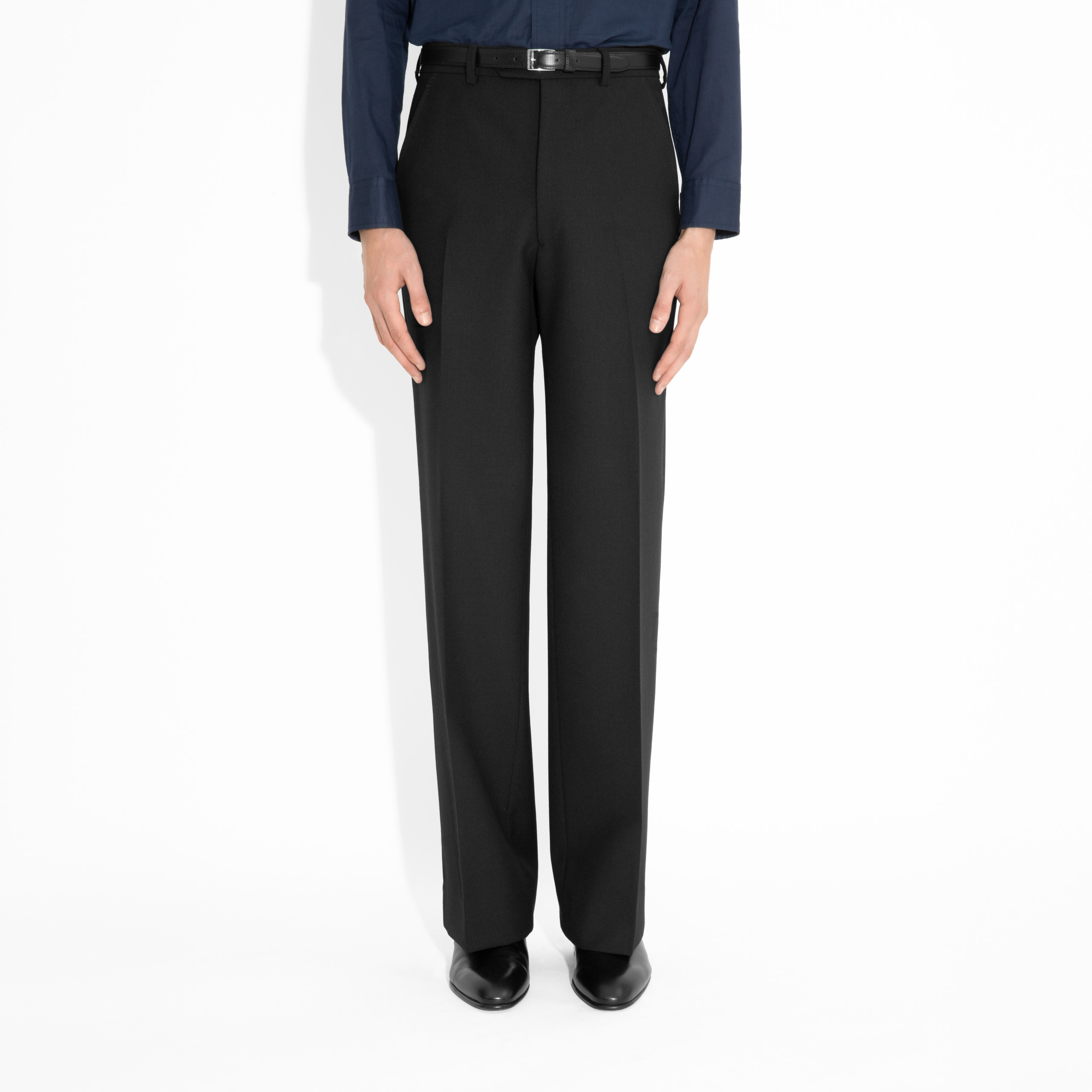 pantalon taille haute à pli, jambe large, en en fresco de laine 3-ply anglaise