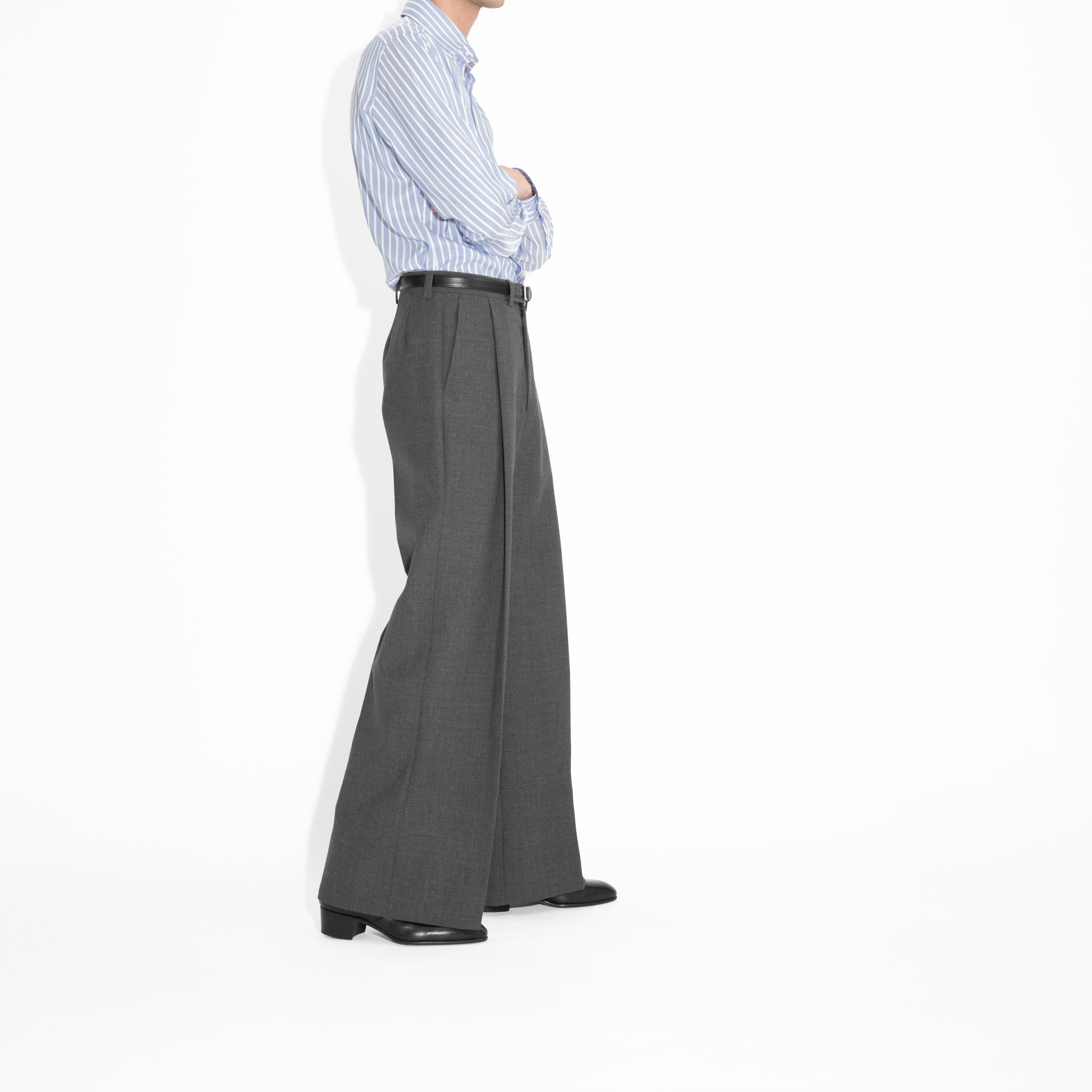 PANTALON TRÈS LARGE TAILLE HAUT EN FRESCO – GRIS