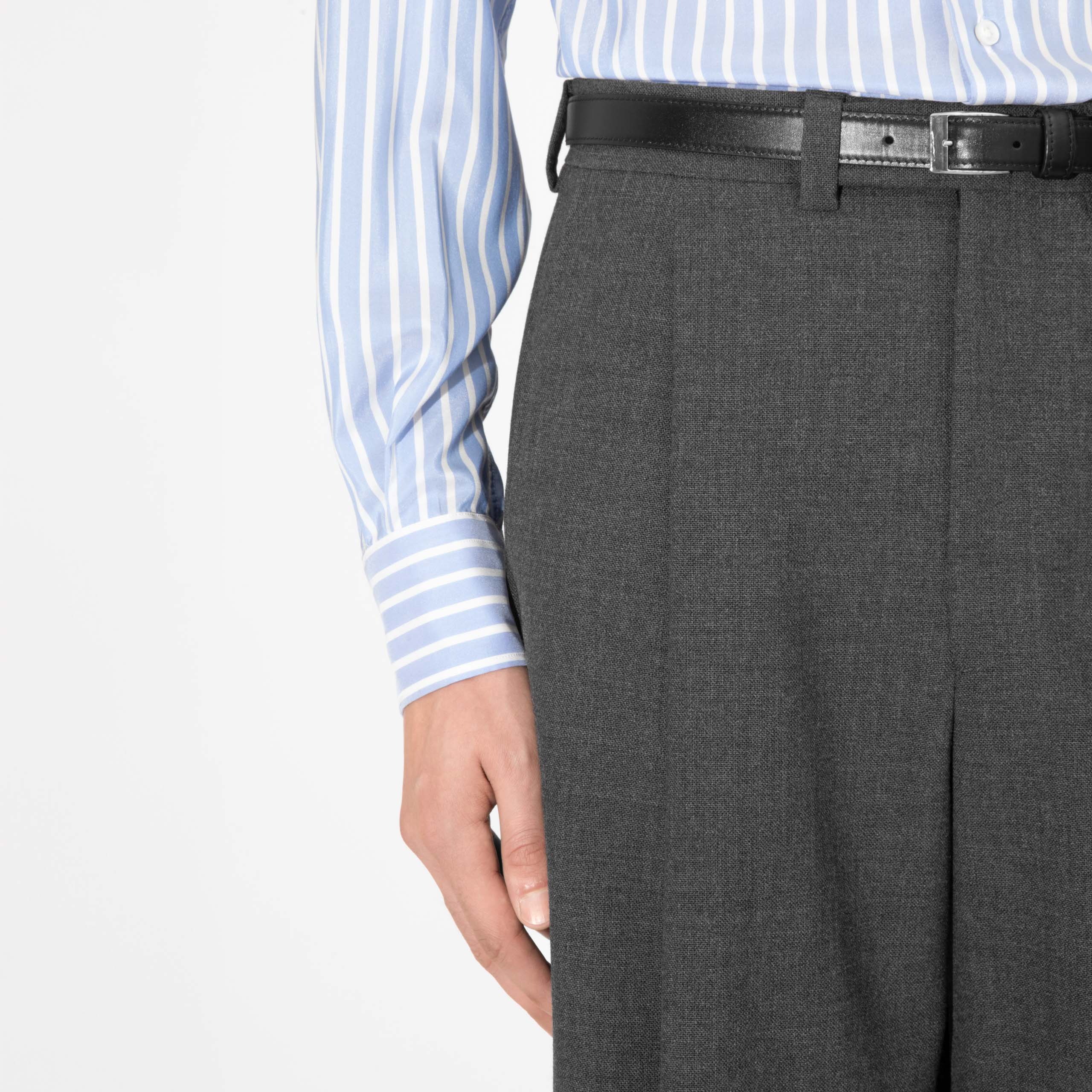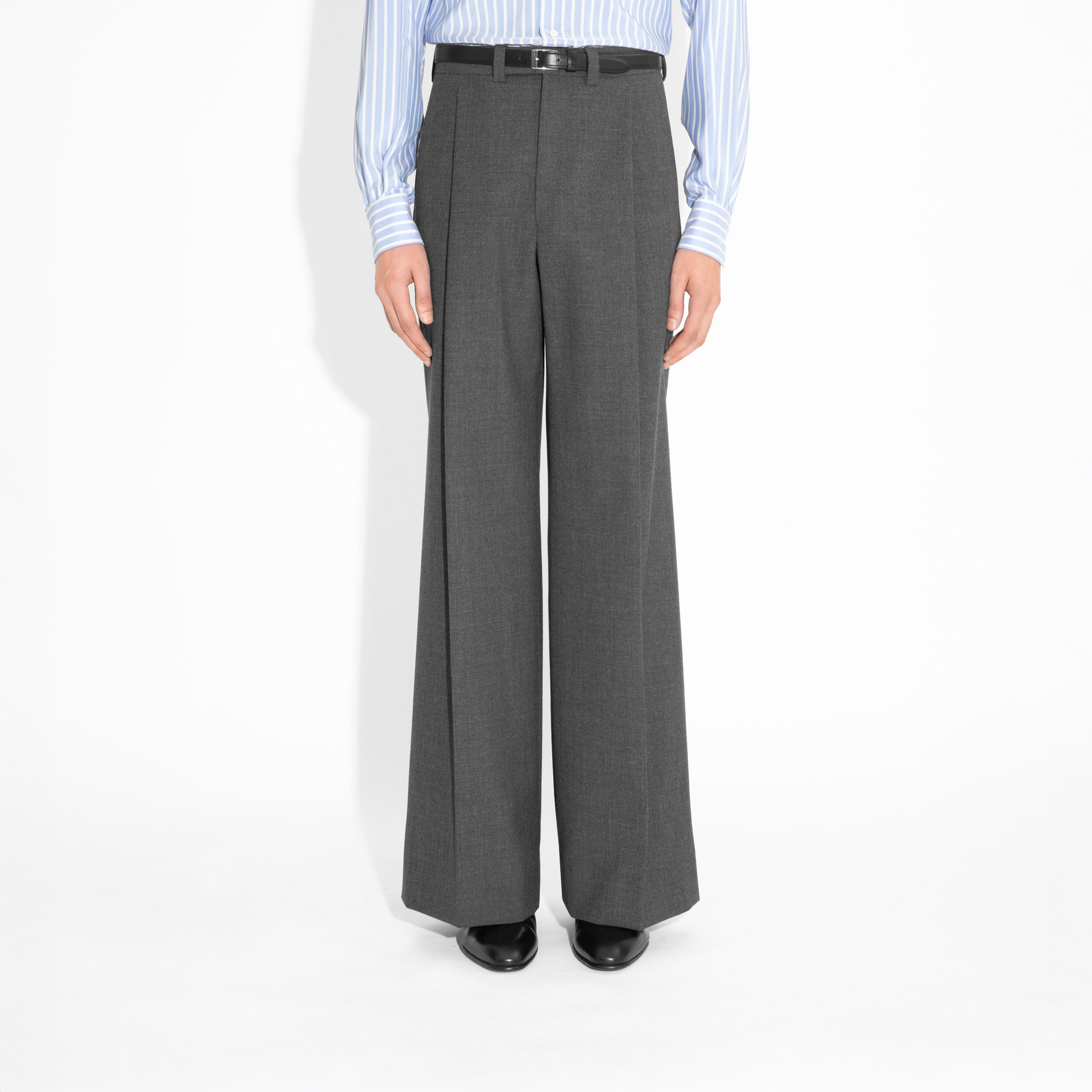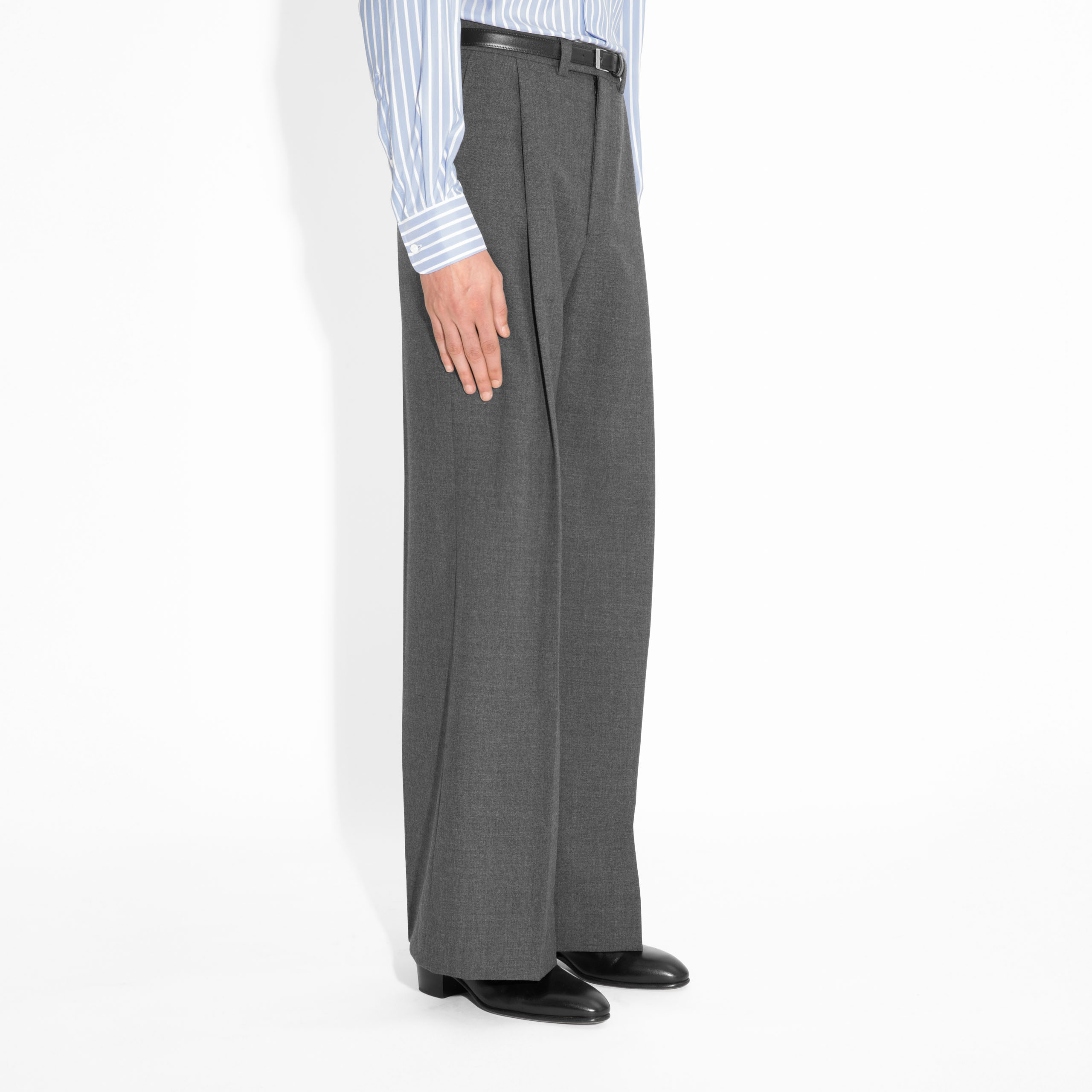 pantalon taille haute à pli, jambe large, en en fresco de laine 3-ply anglaise