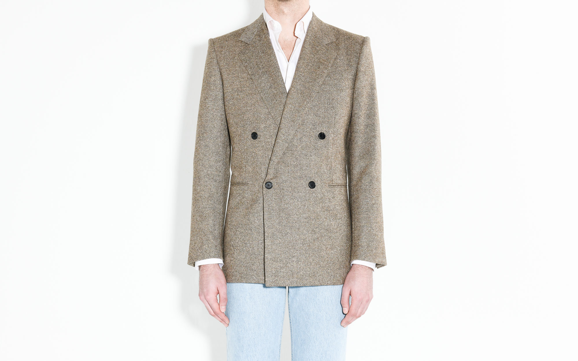 veste croisé quatre boutons, coupe classique, en tweed anglais