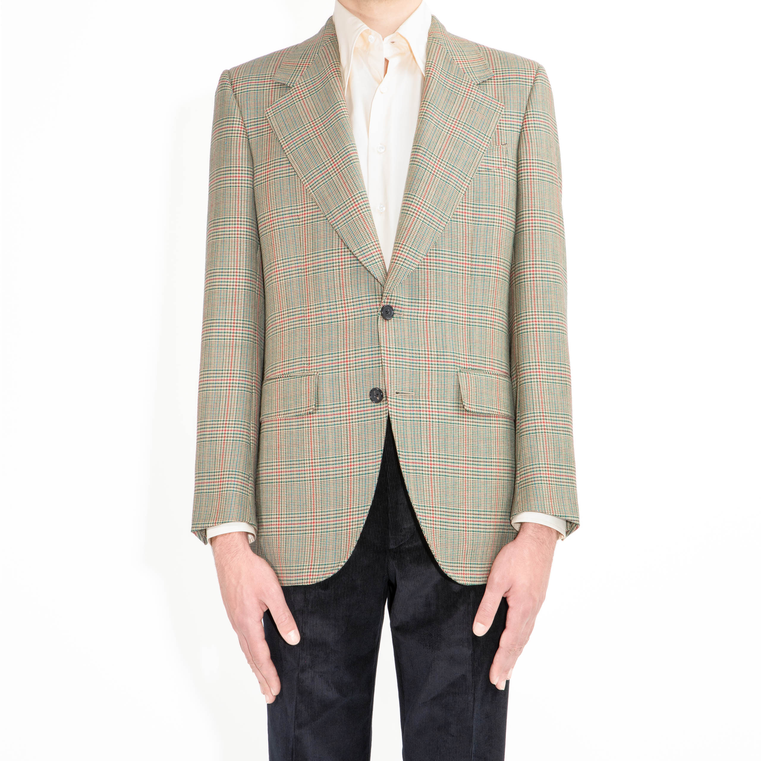 veste droite deux boutons, coupe classique, en tweed de laine écossais