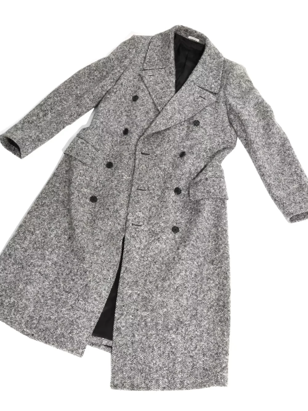 DOUBLE-BREASTED COAT IN TWEED – BLACK AND WHITE