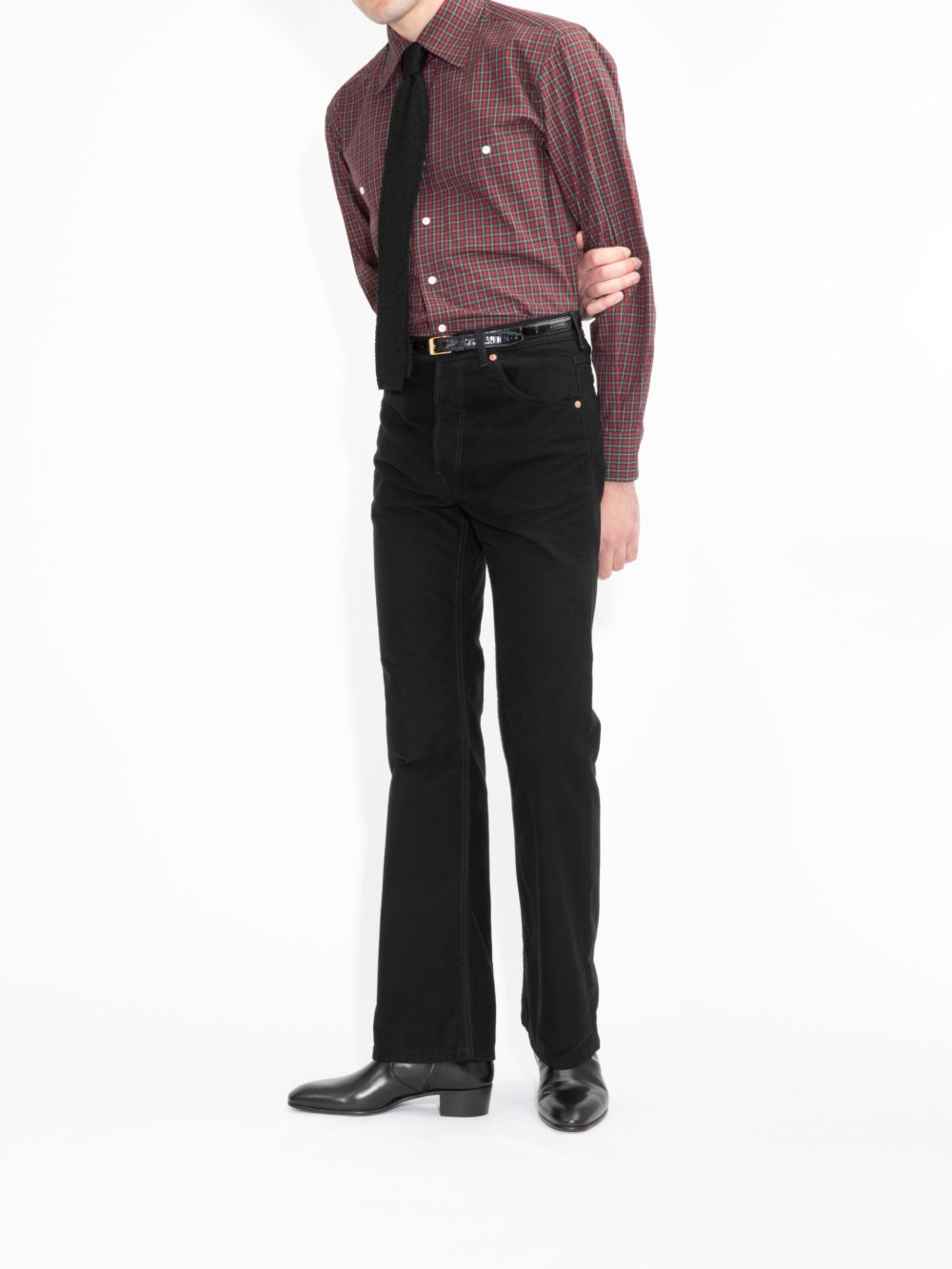 FLARED HIGH-WAISTED JEANS IN MOLESKIN – BLACK