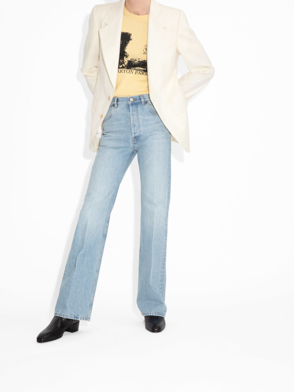 FLARED HIGH-WAISTED JEANS IN DENIM – WHITE