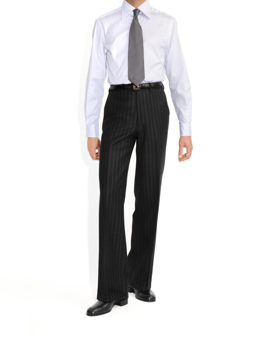 WIDE COLLAR SHIRT IN TWILL – WHITE WITH BLUE STRIPES