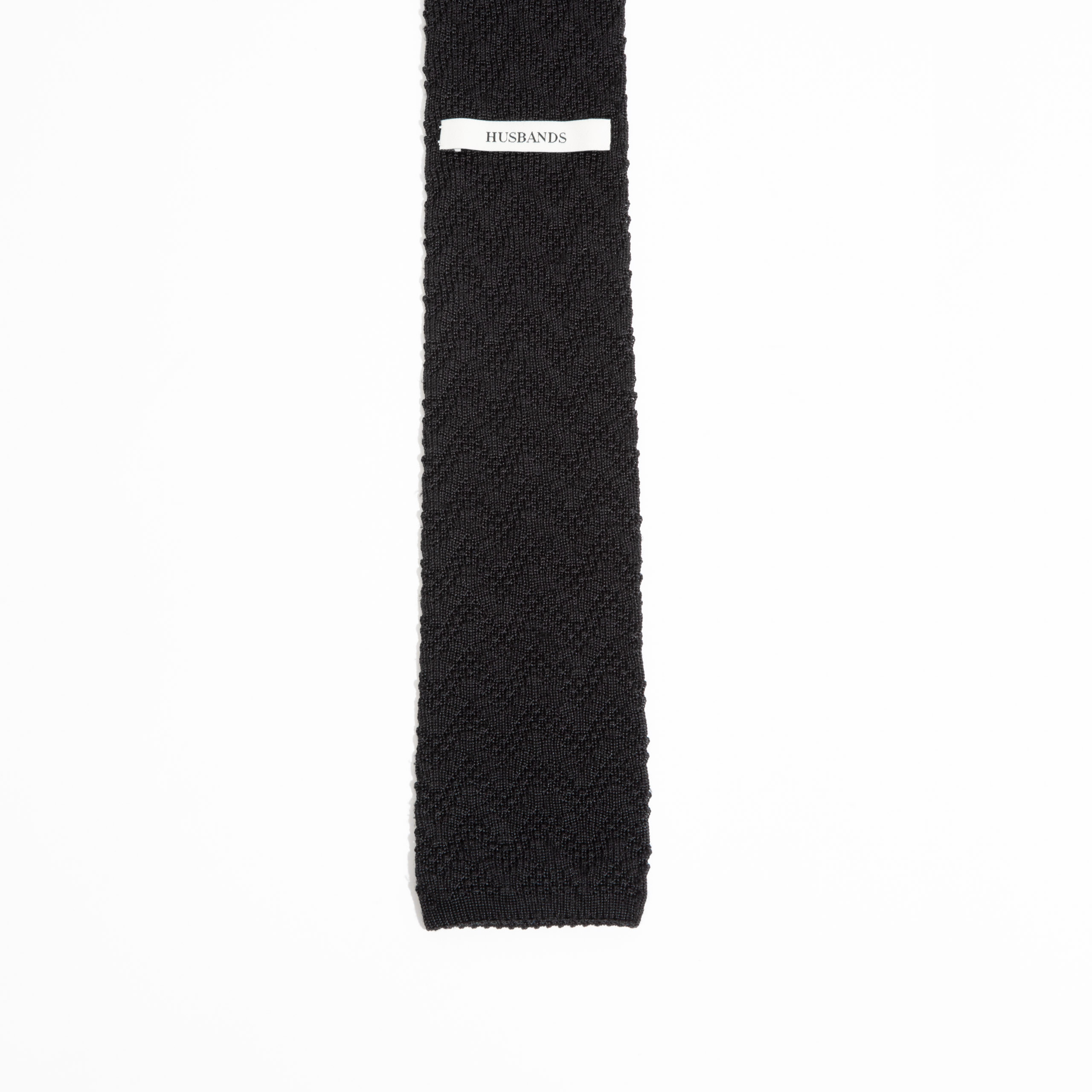 ABSTRACT KNIT TIE IN SILK – BLACK
