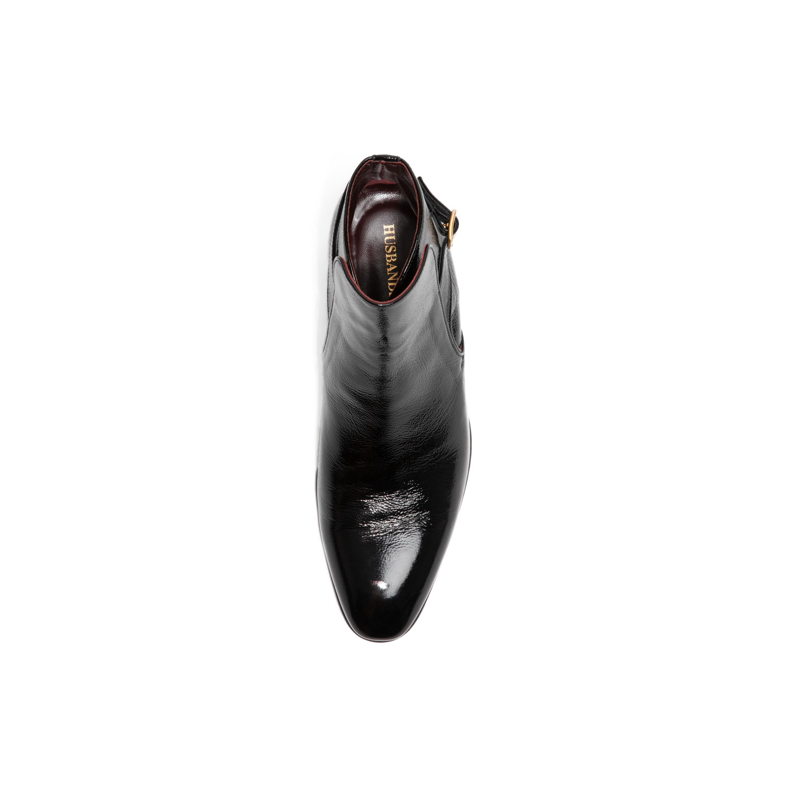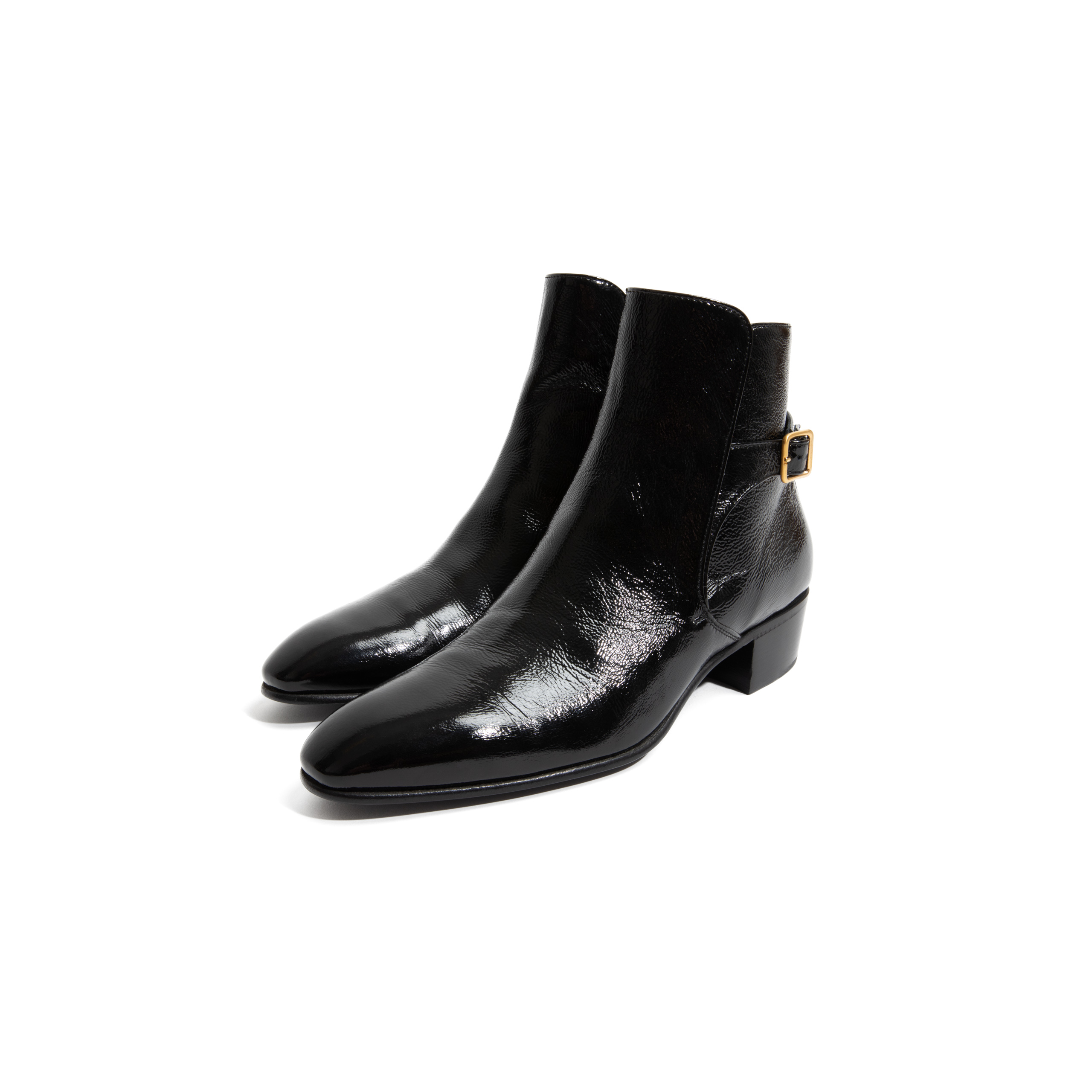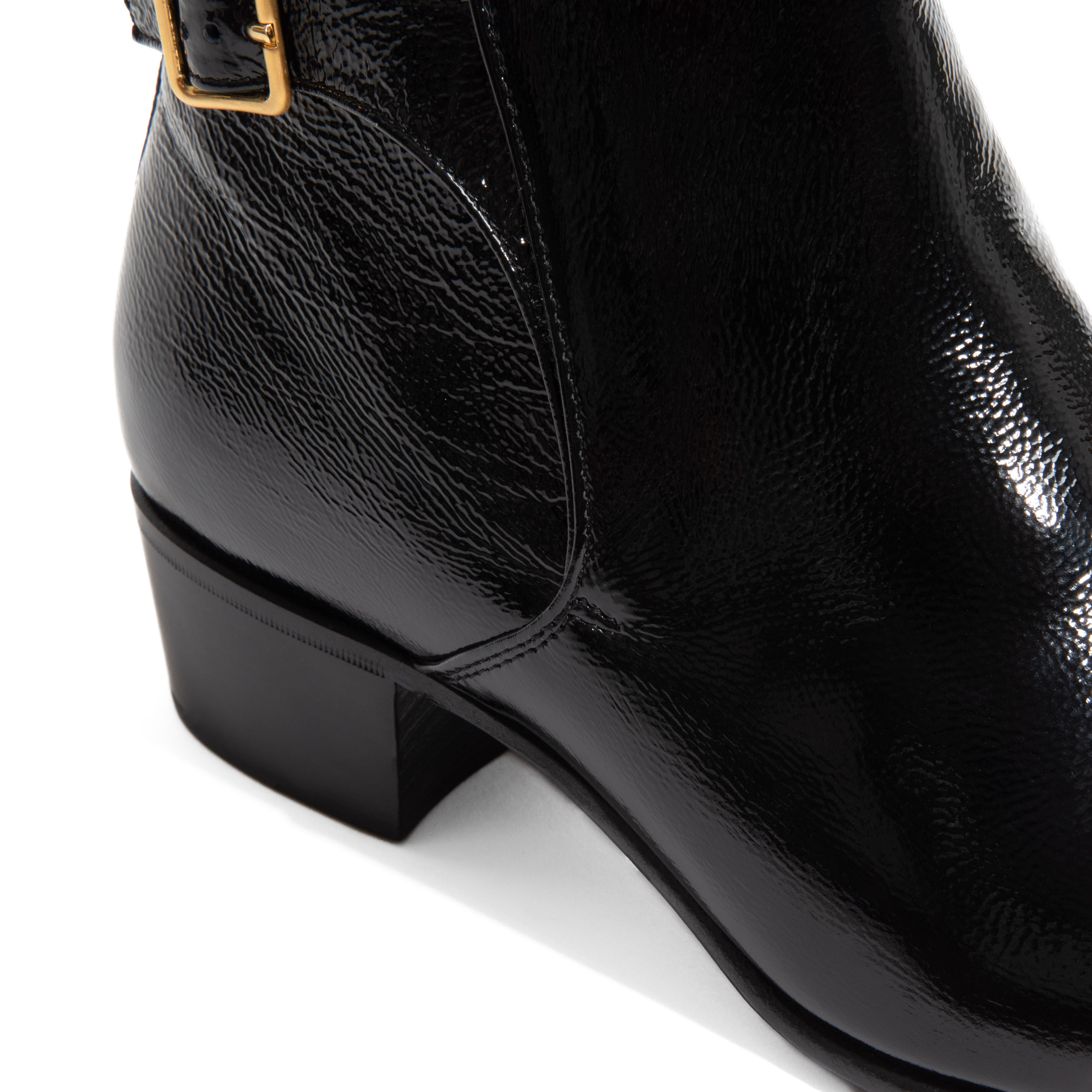 buckled boots in Italian crackled patent calfskin