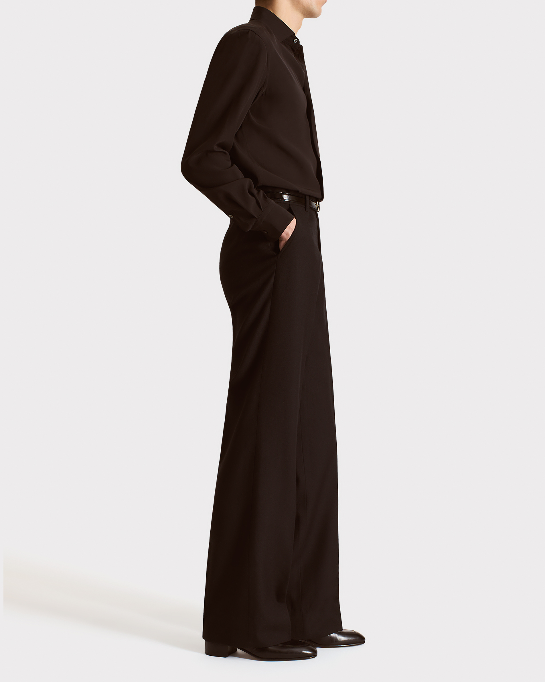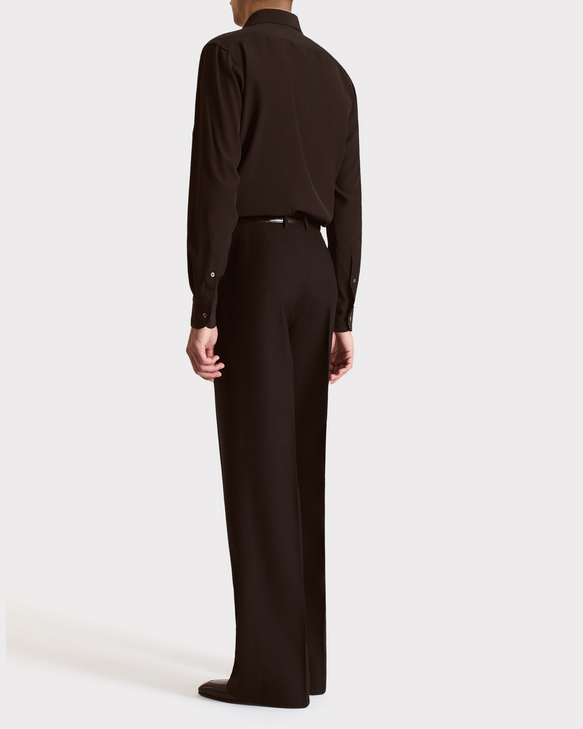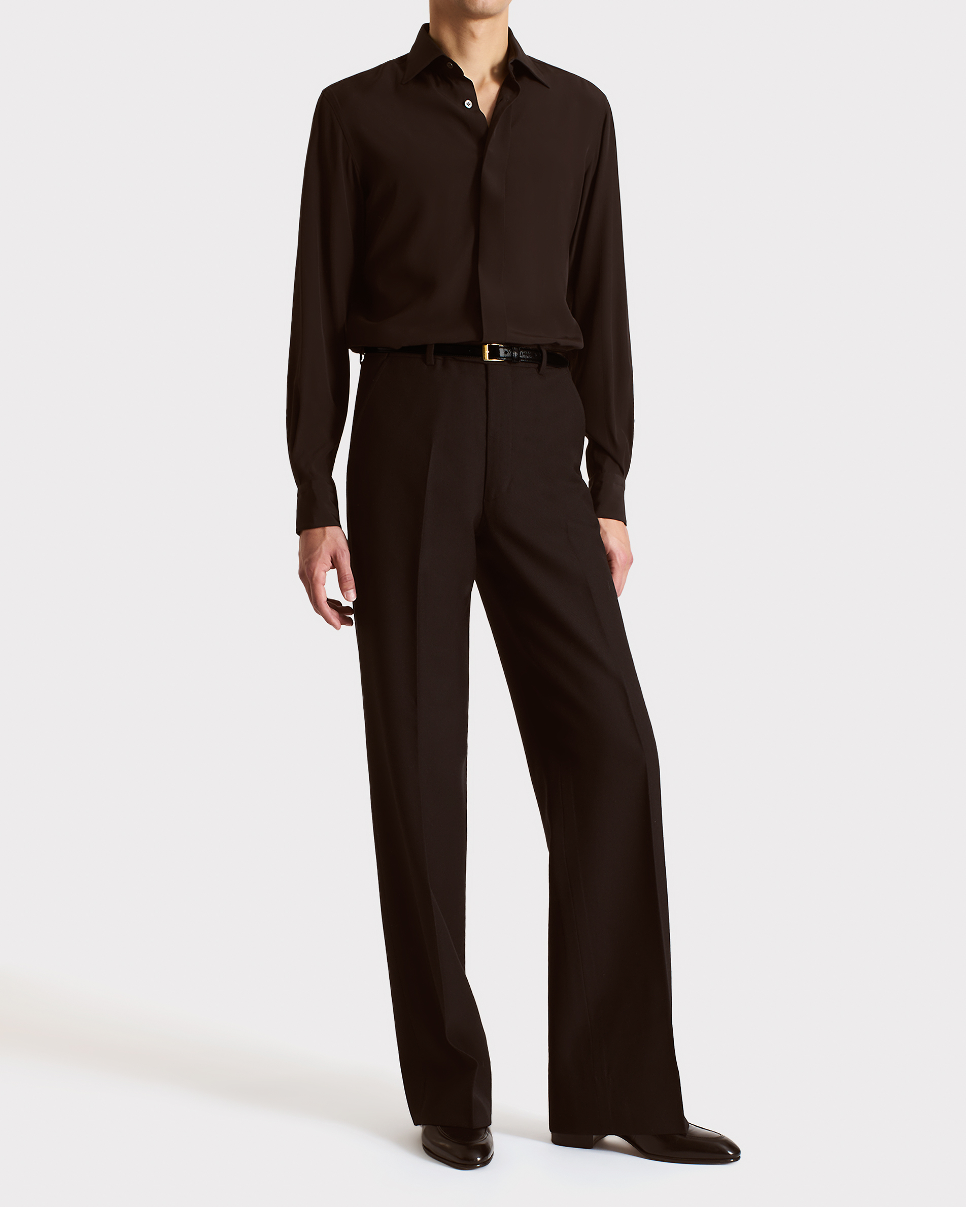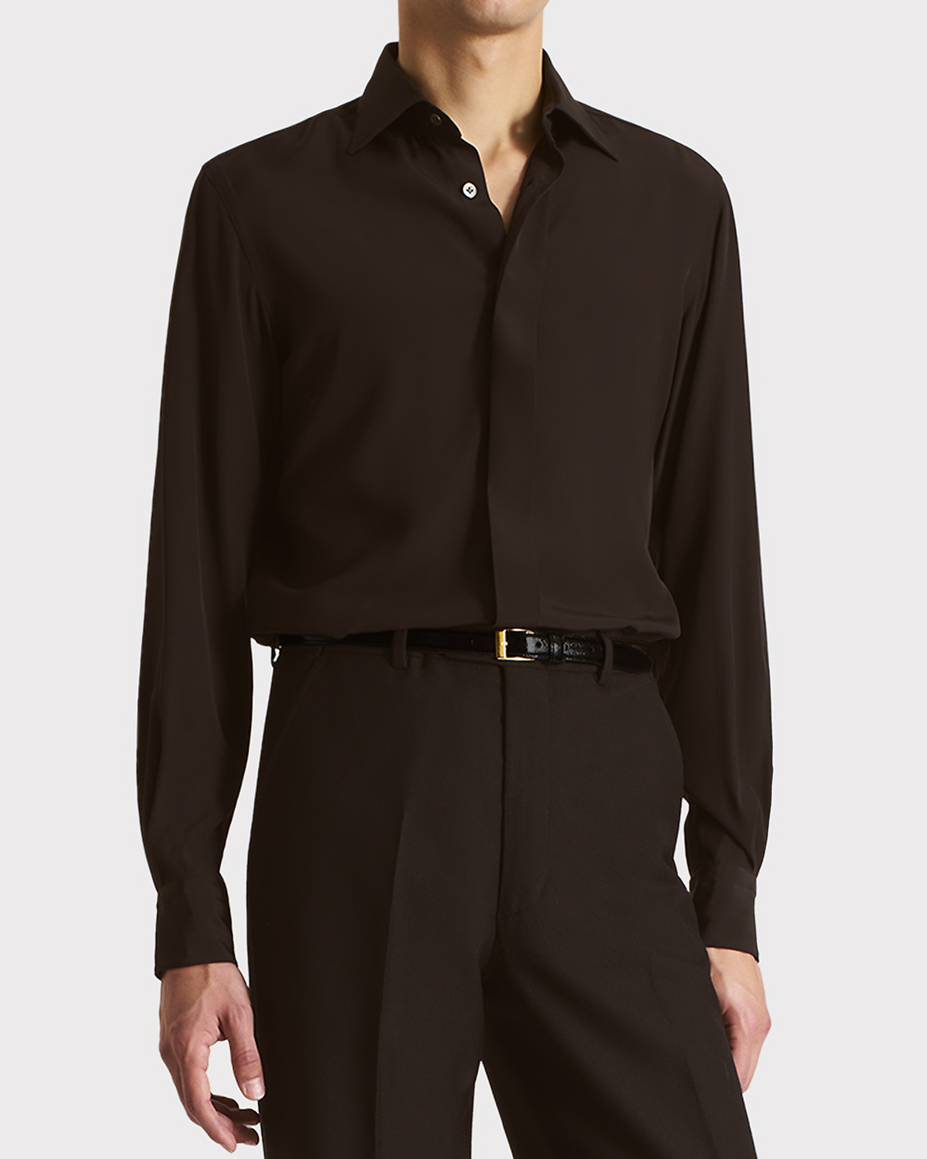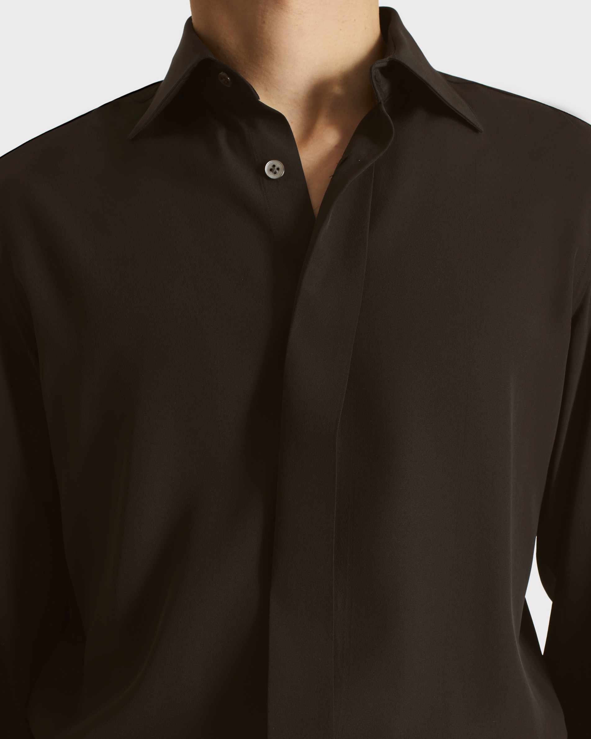 CLASSIC COLLAR SHIRT IN SILK CREPE – DARK CHOCOLATE