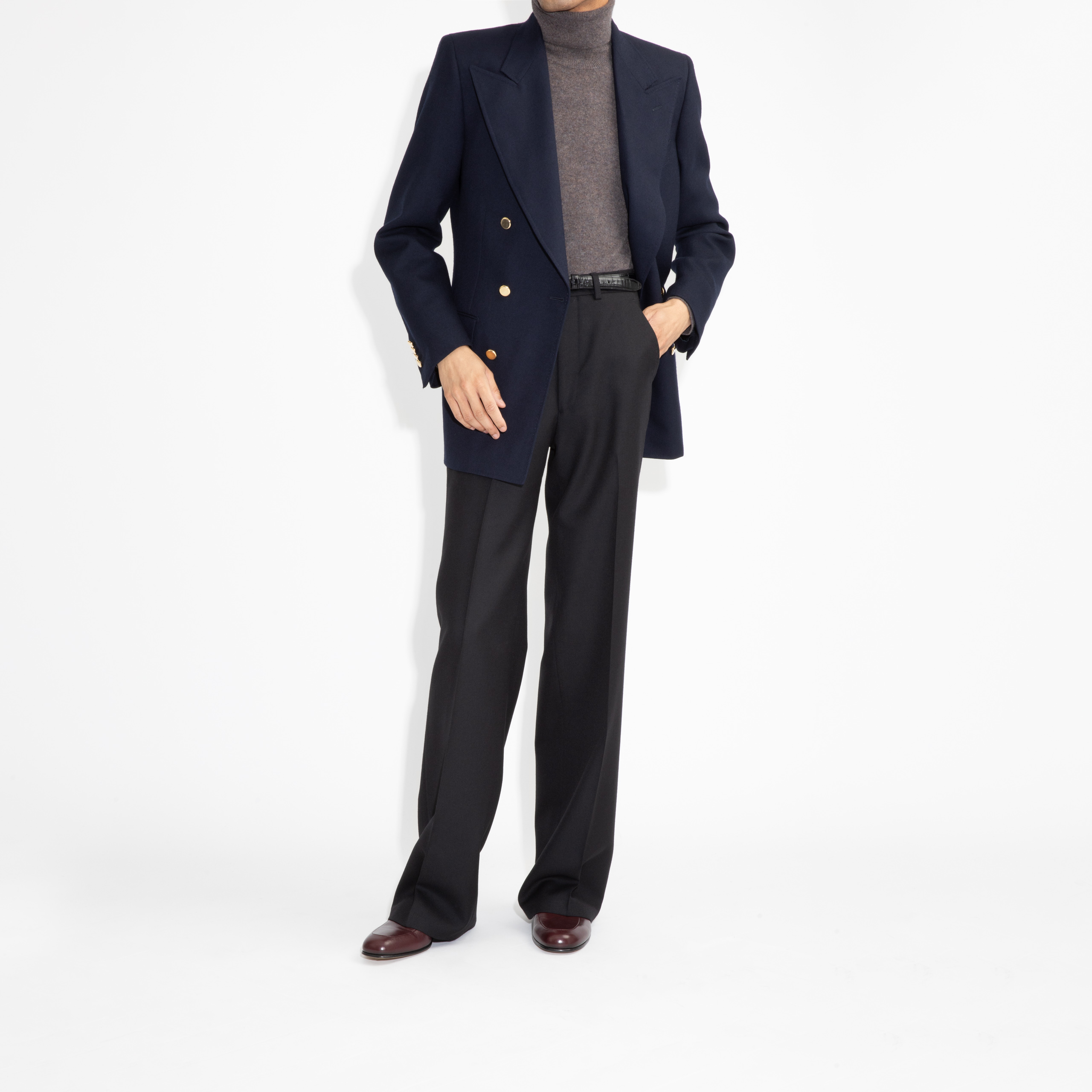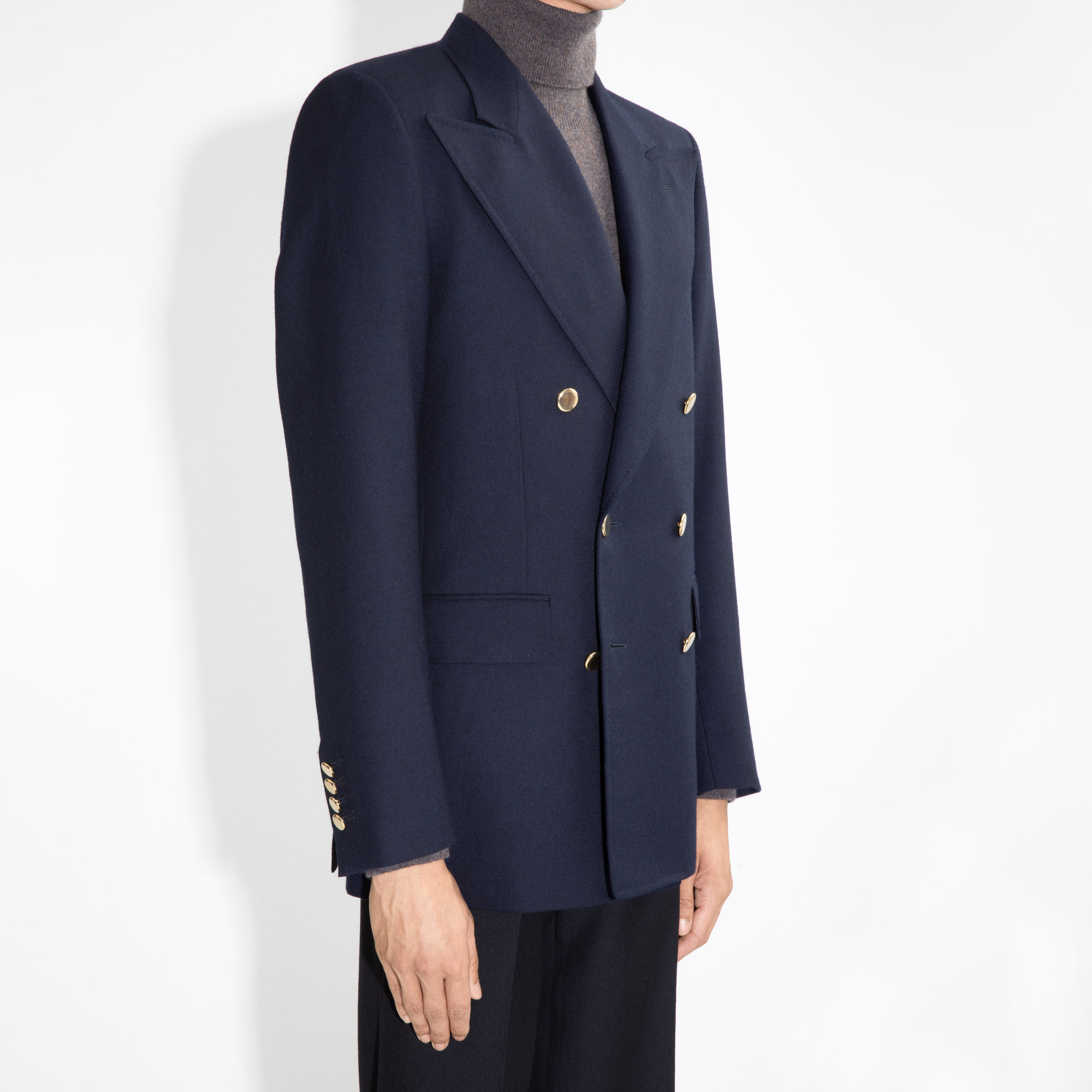 DOUBLE-BREASTED JACKET IN HOPSACK – NAVY