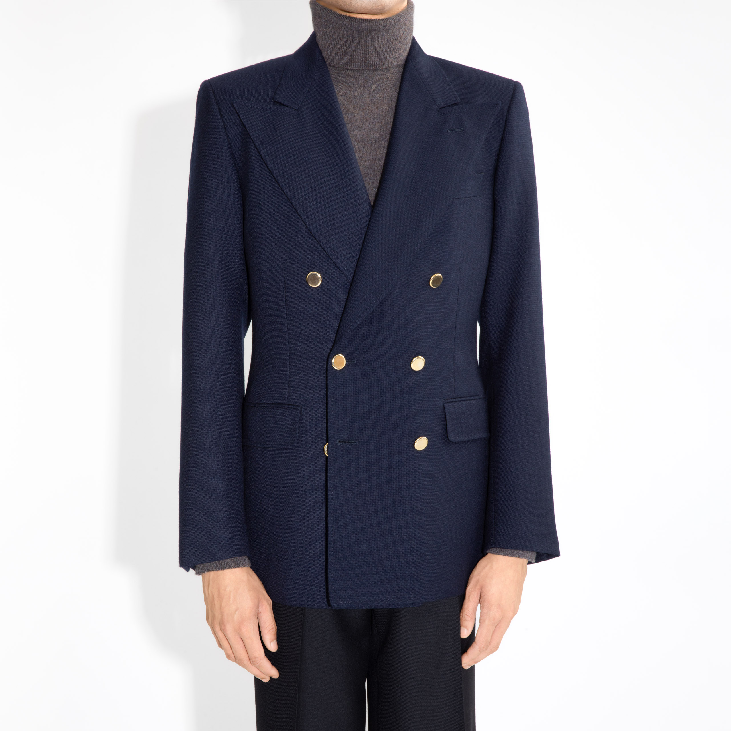 double-breasted six-button jacket, classic fit, in English wool hopsack