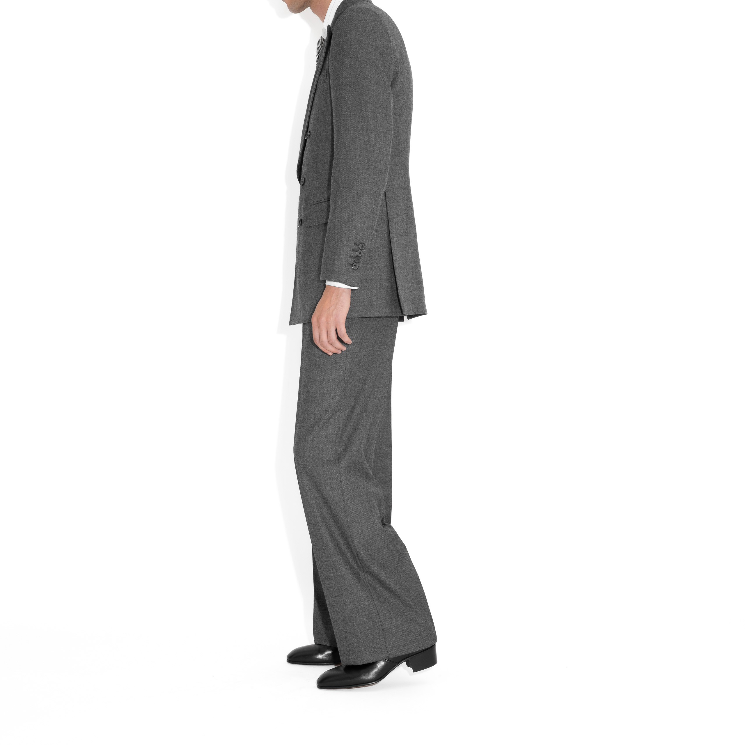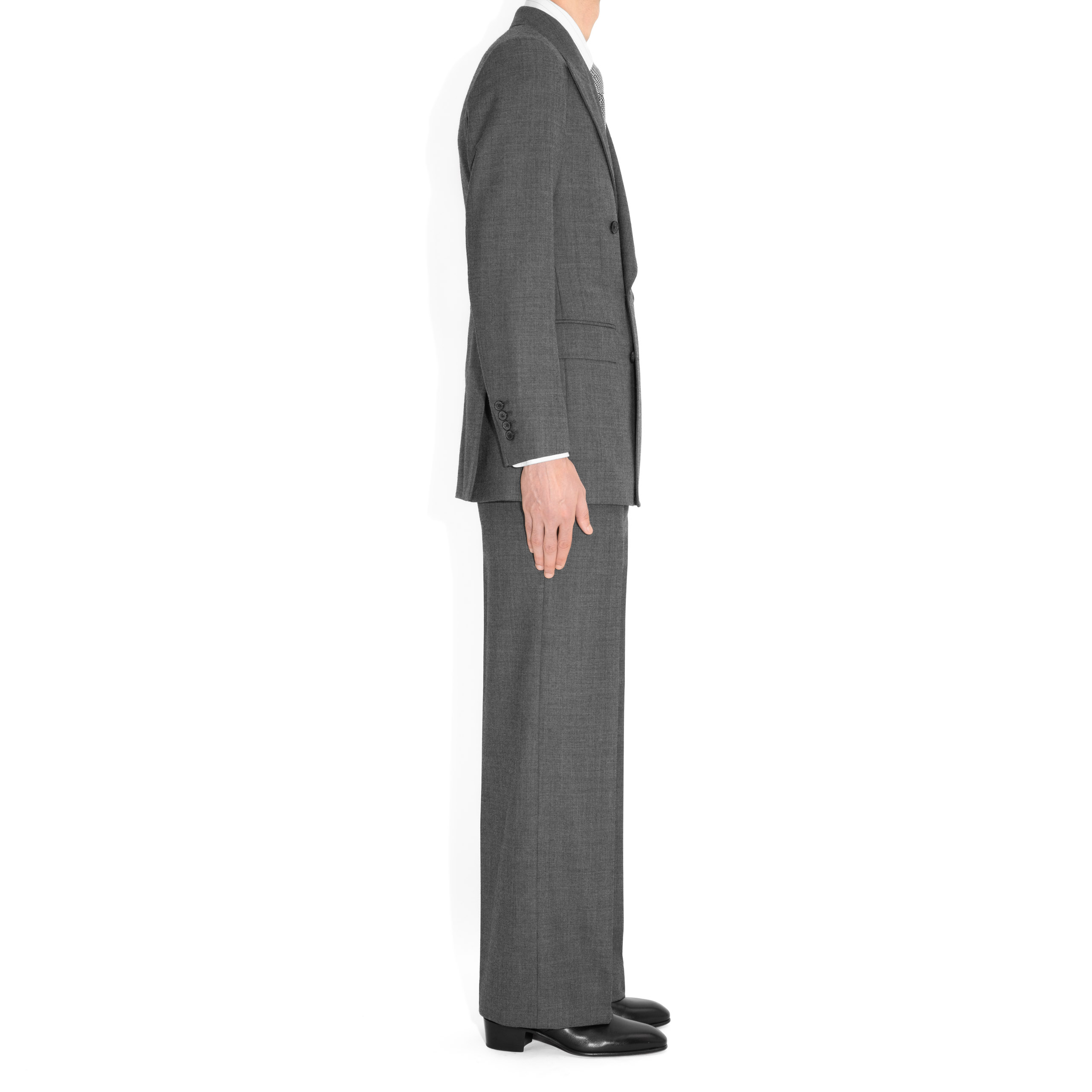 DOUBLE-BREASTED SUIT IN SHARKSKIN – GREY