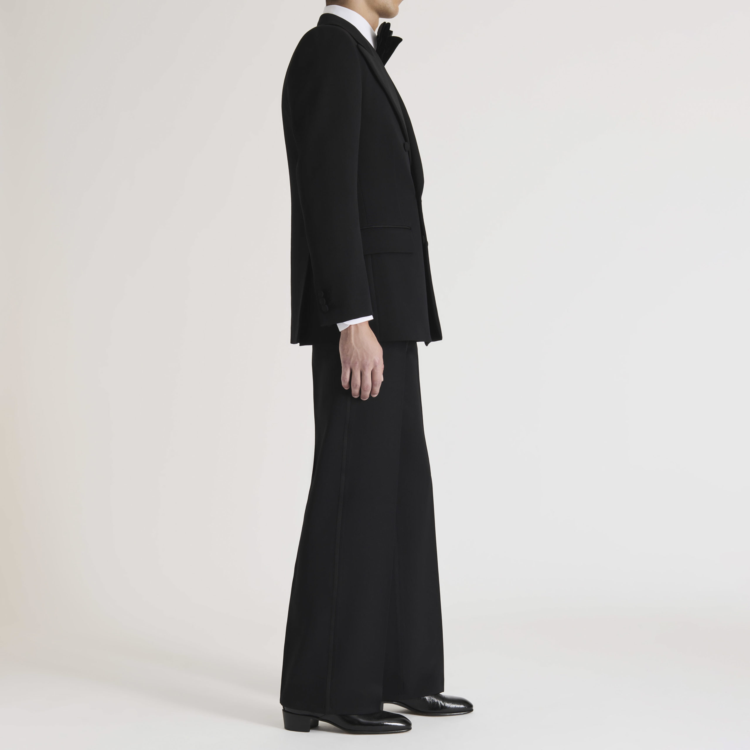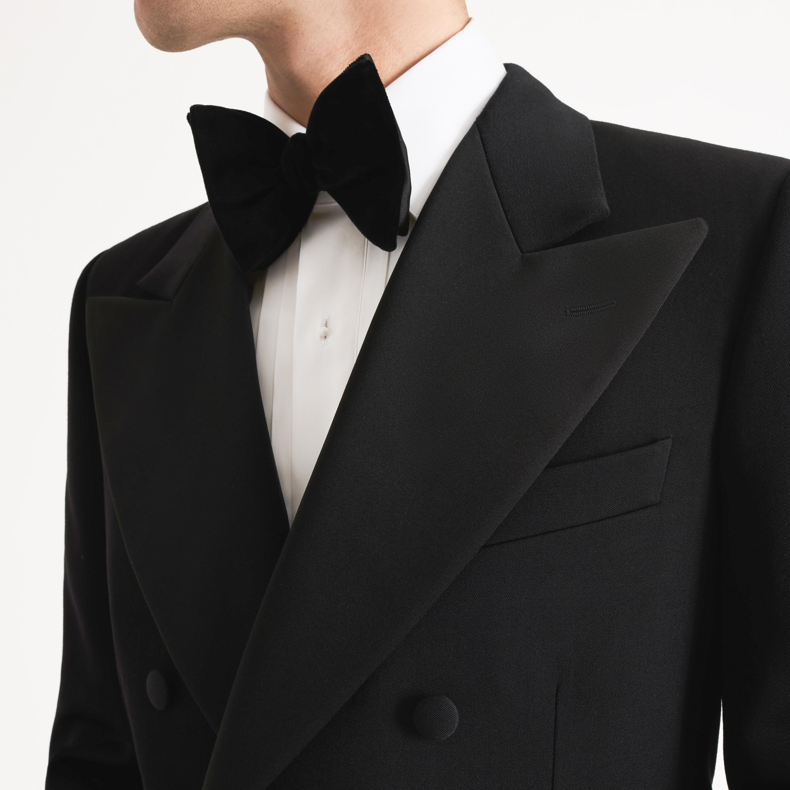 DOUBLE-BREASTED TUXEDO IN GRAIN DE POUDRE – BLACK