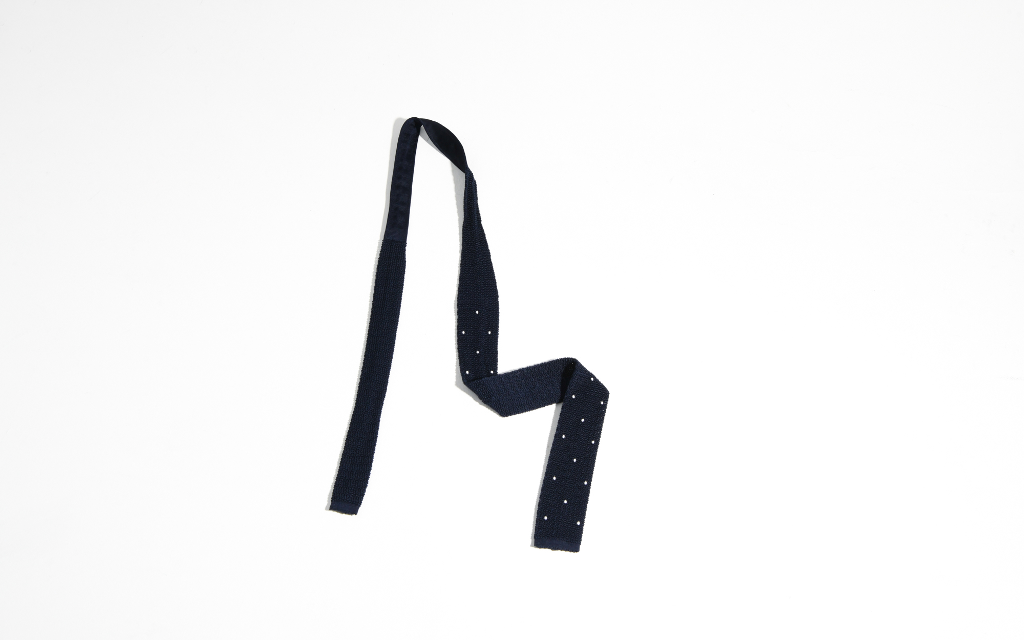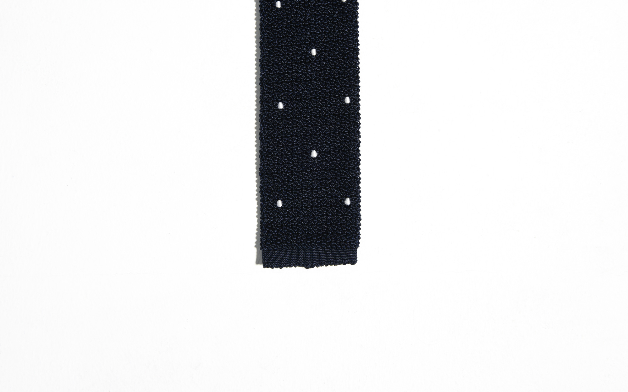 KNIT TIE IN SILK – NAVY WITH WHITE POLKA DOTS