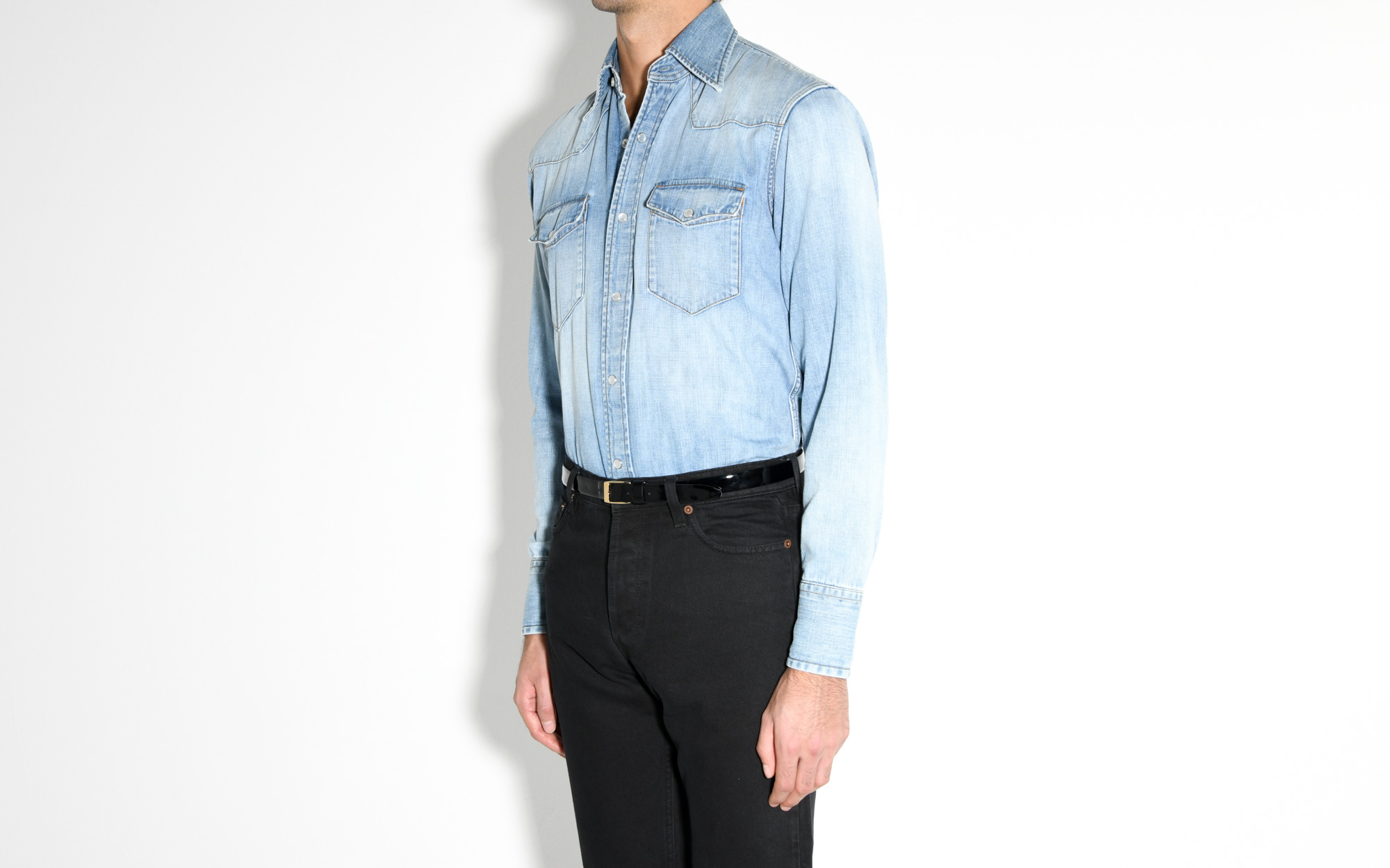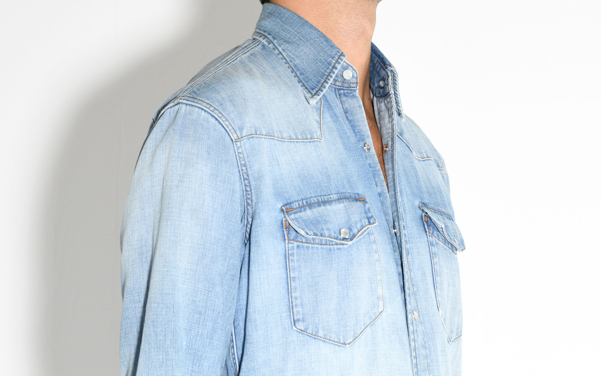 WESTERN SHIRT IN SELVEDGE DENIM – BLUE STONE WASHED