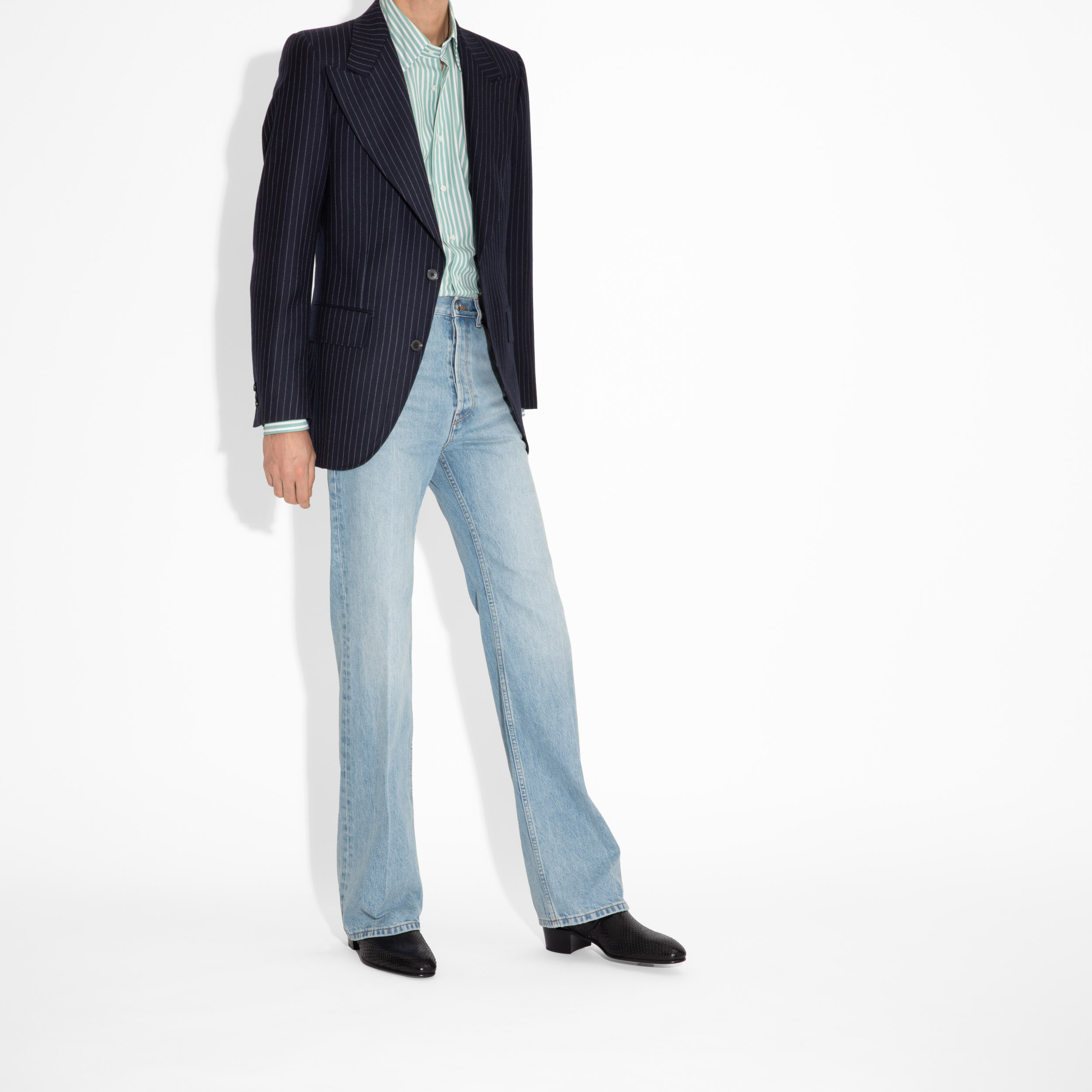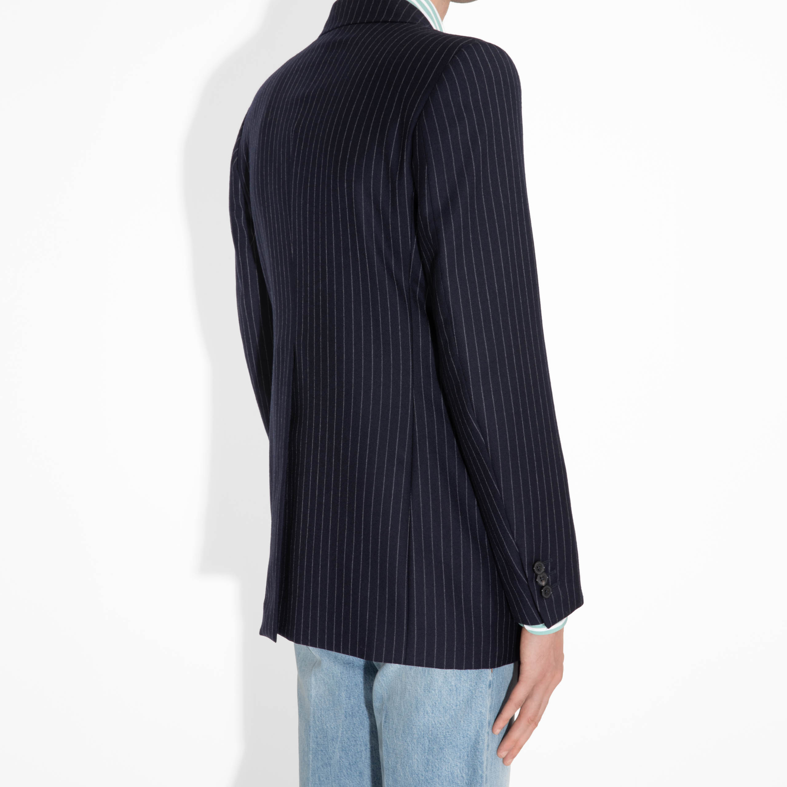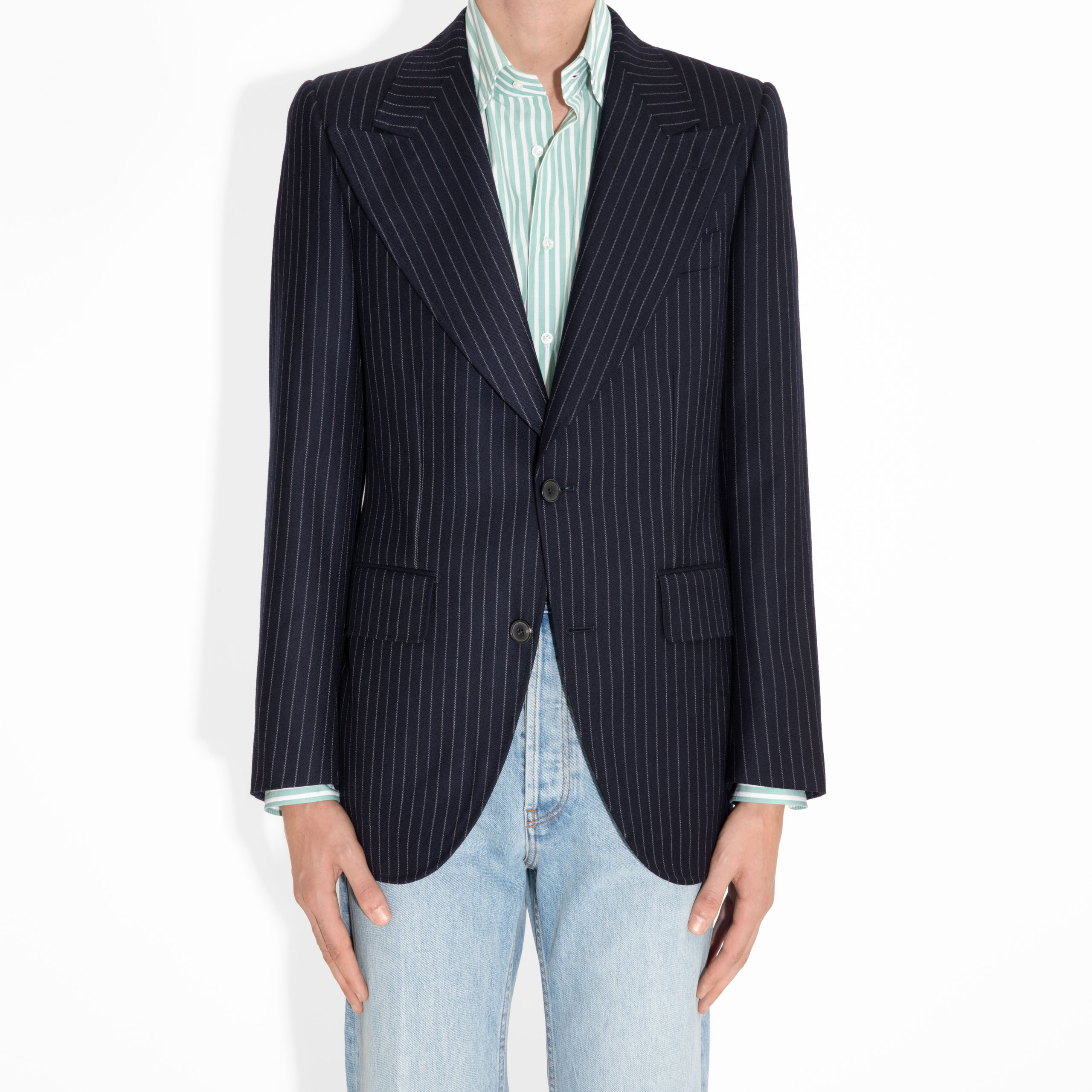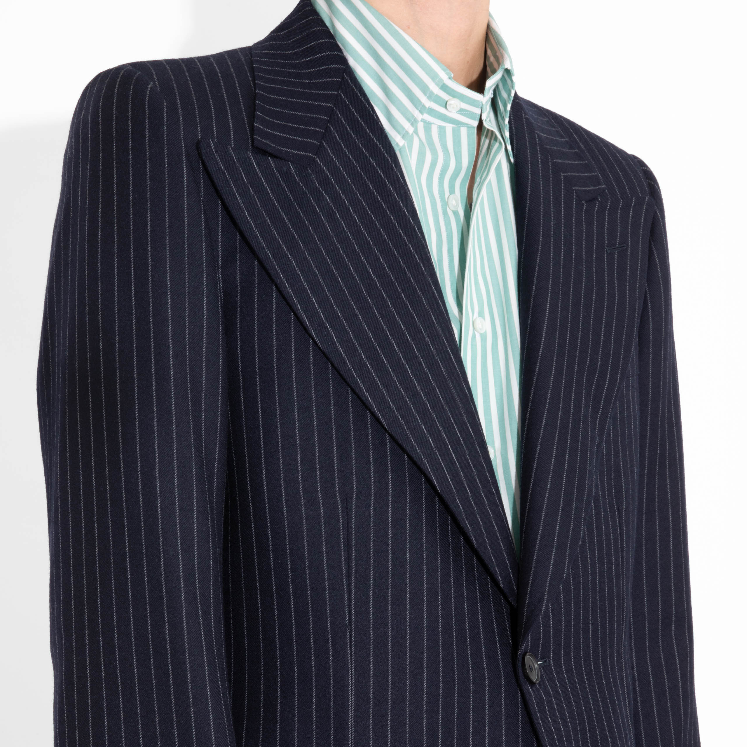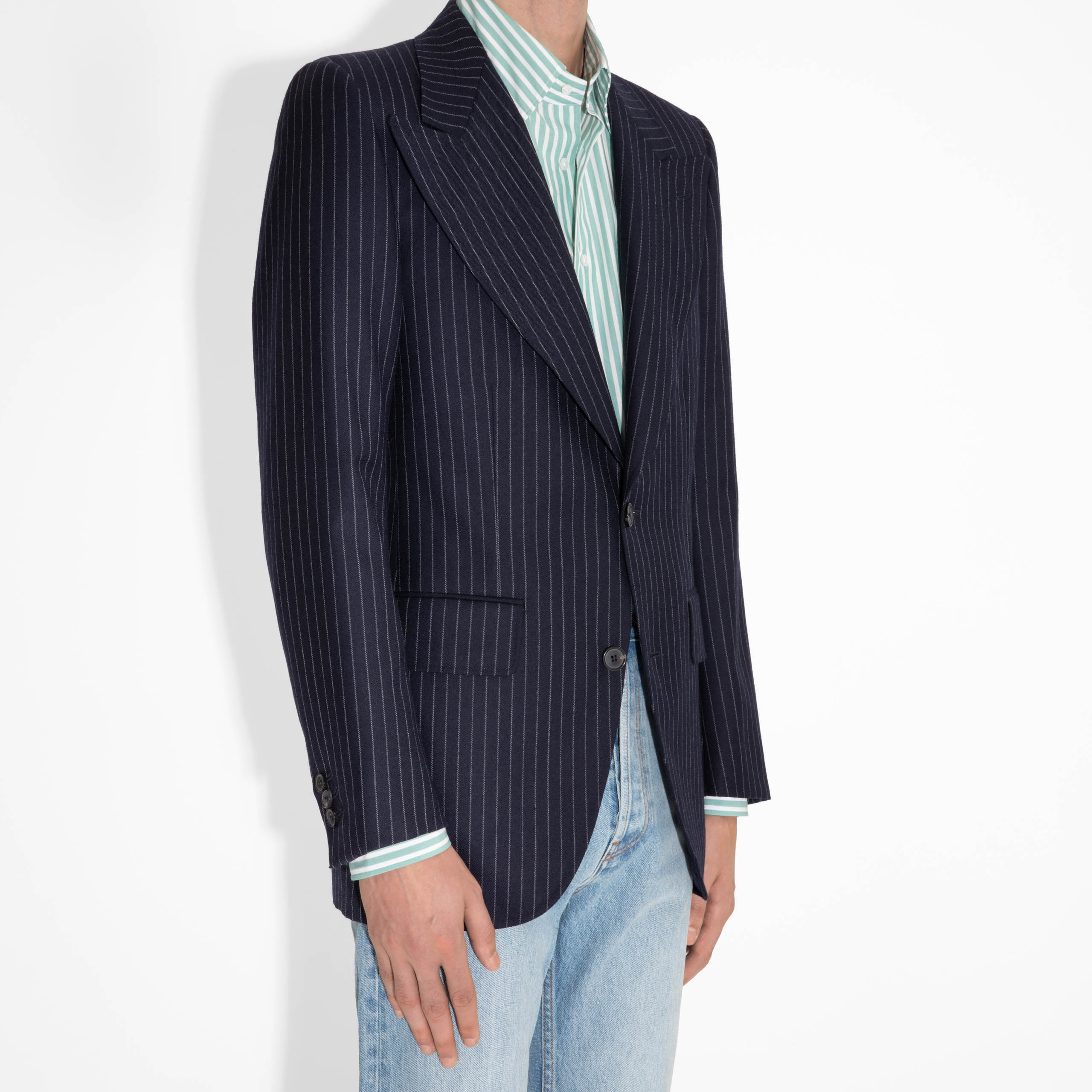 SINGLE-BREASTED JACKET IN TWILL – NAVY WITH CHALK STRIPES