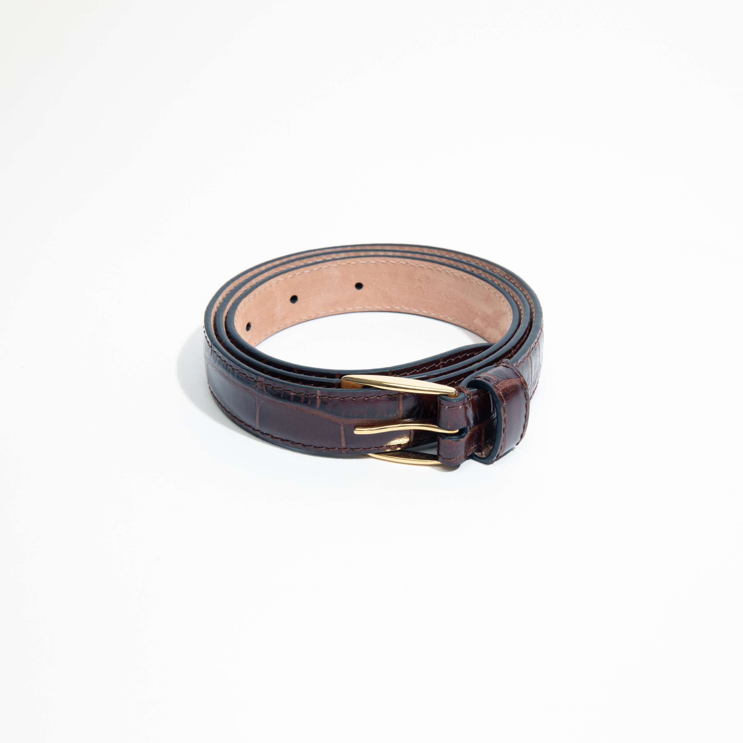thin belt in crocodile embossed Italian calfskin